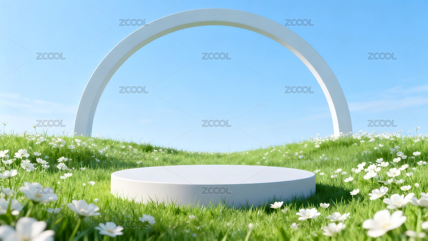 草地白色圆台和拱门背景