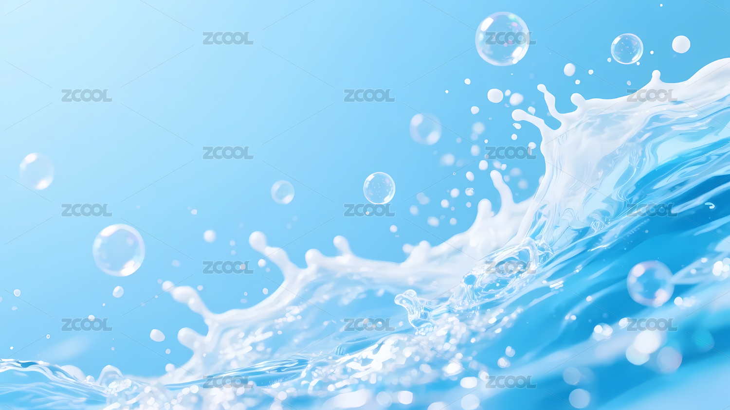 蓝色水波漂浮气泡