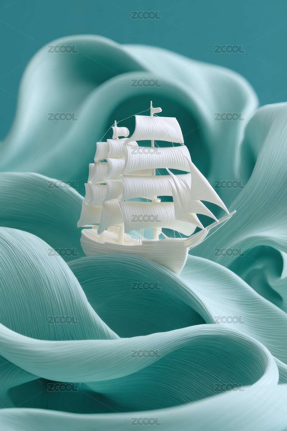 梦幻帆船在波浪中的艺术表现