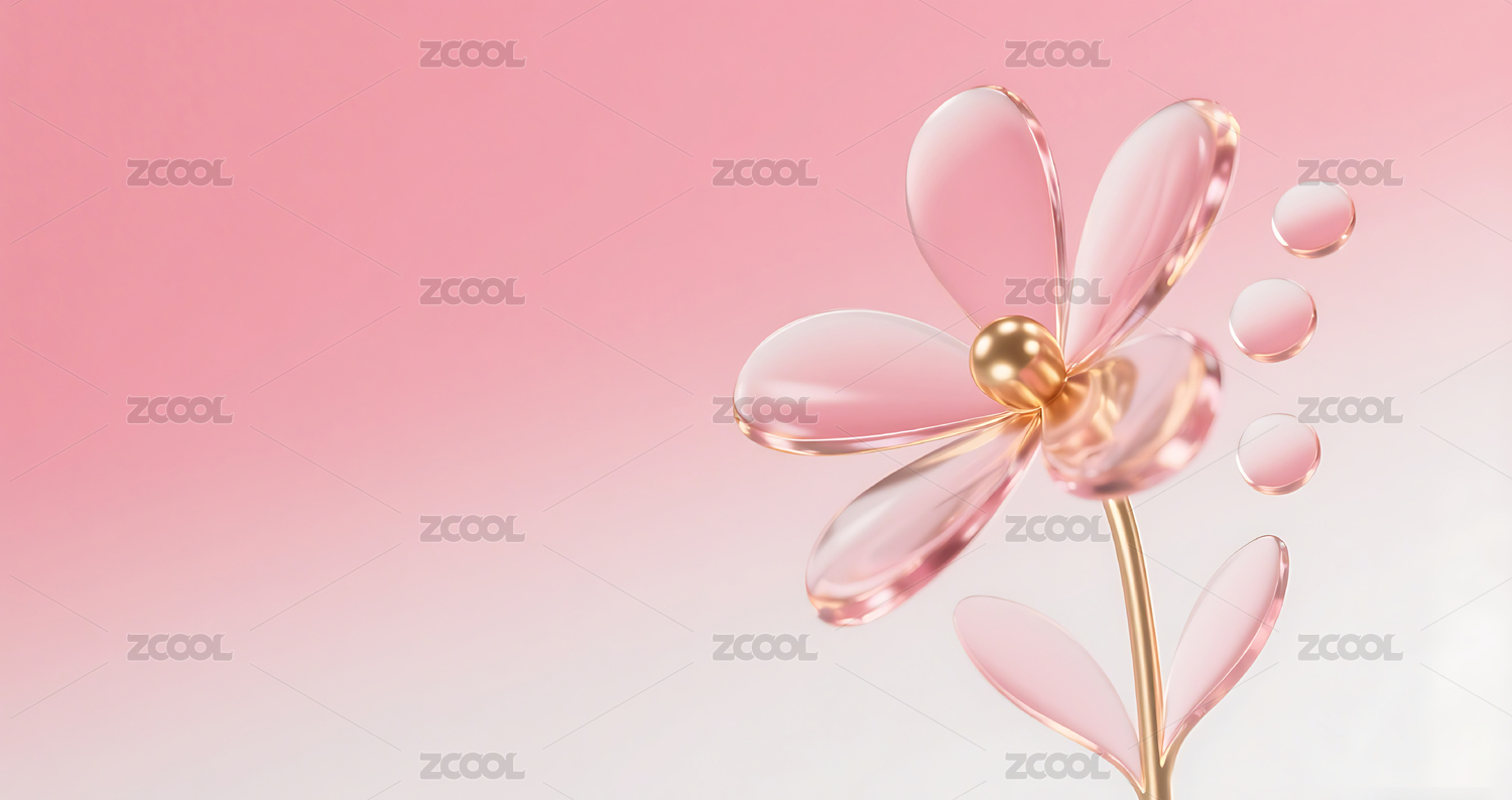 粉色3D立体玻璃质感花朵背景
