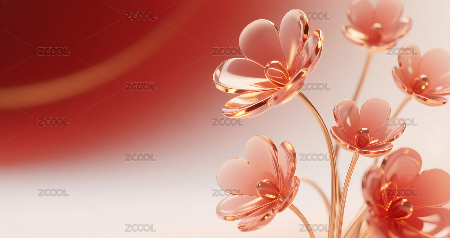 红色3D立体玻璃质感花朵背景