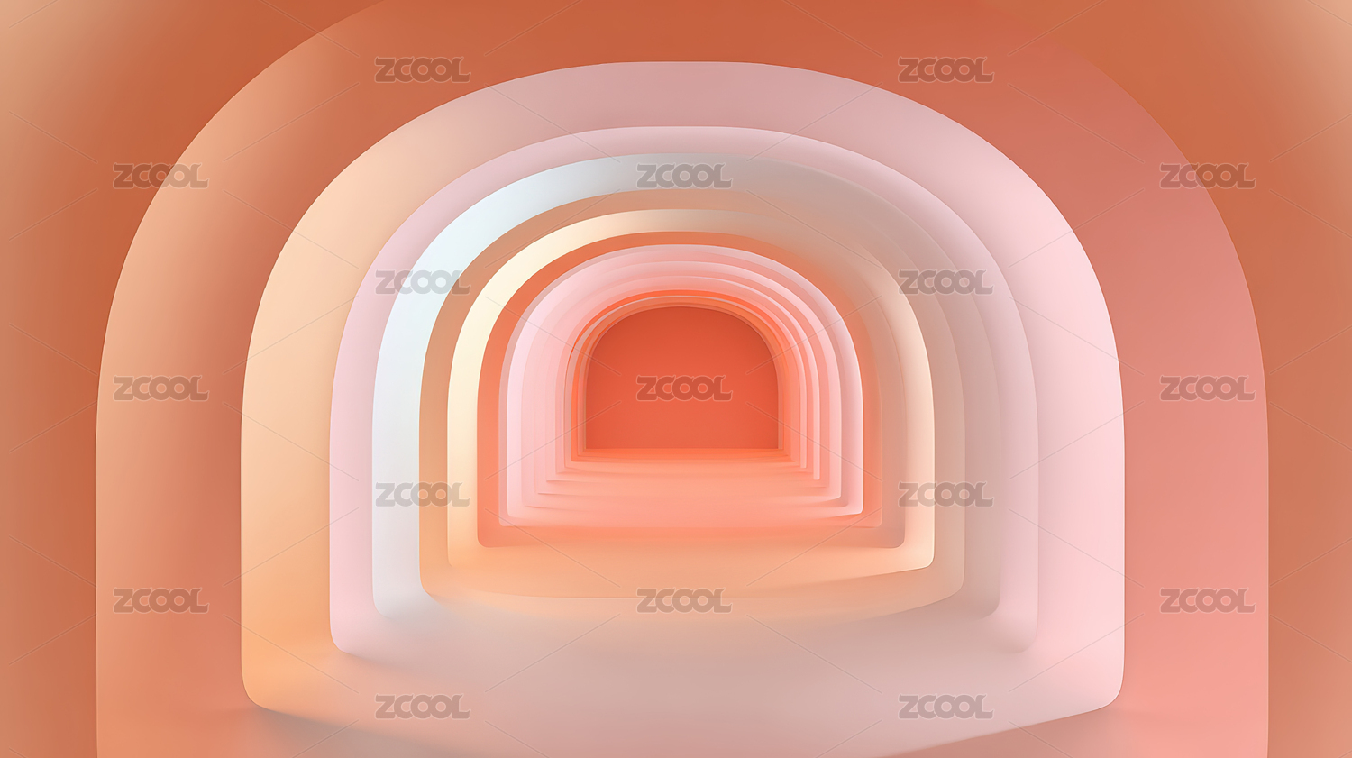3D渲染科幻几何隧道霓虹灯线概念插图