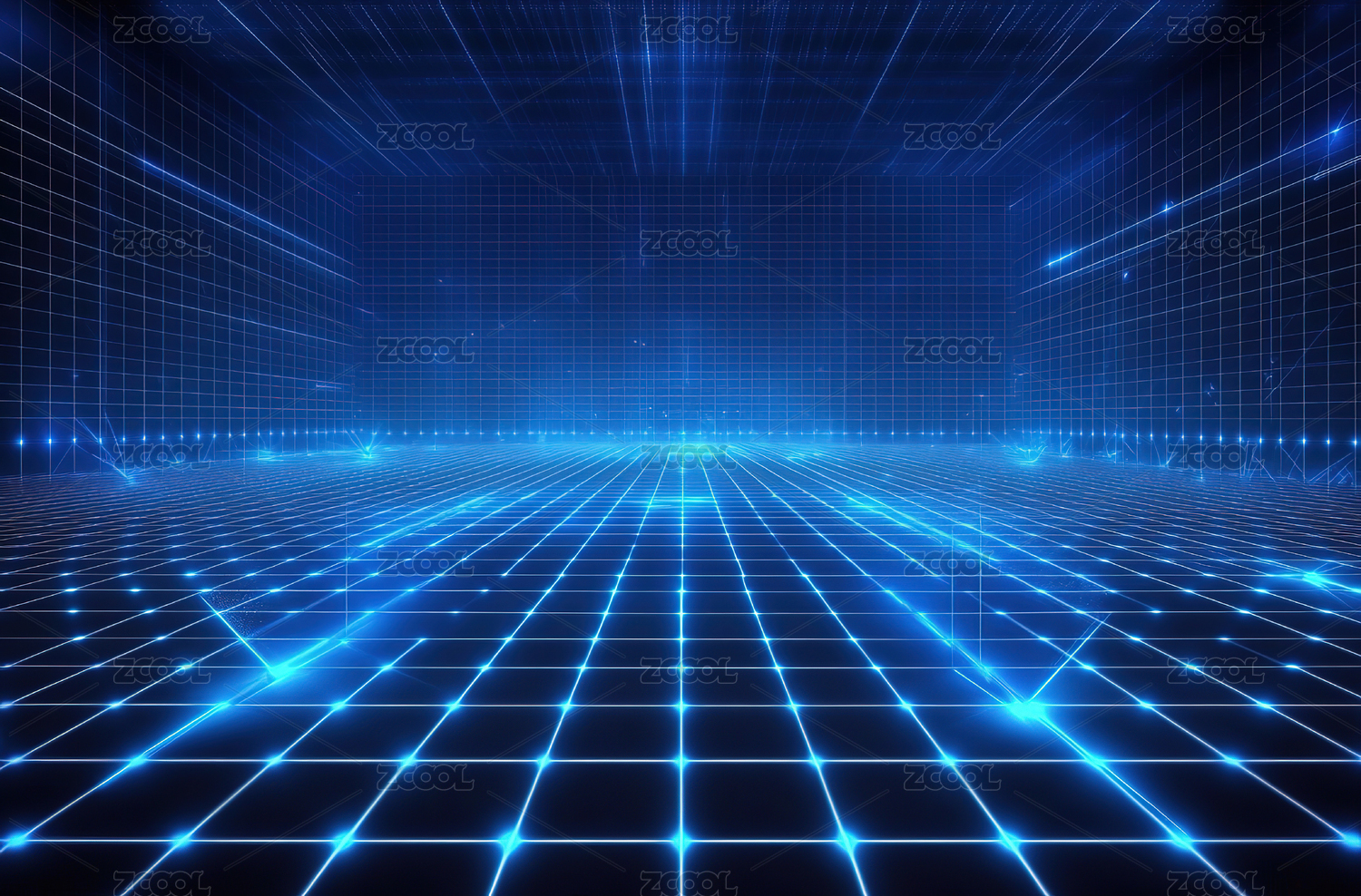 蓝色发光网格抽象光影科技背景