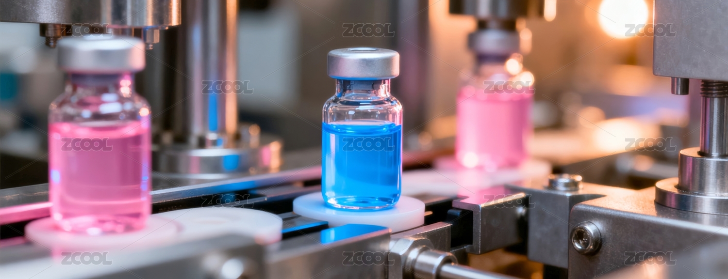 制药,生产,机械,自动化,药品,玻璃瓶,液体,蓝色,透明,灌装
