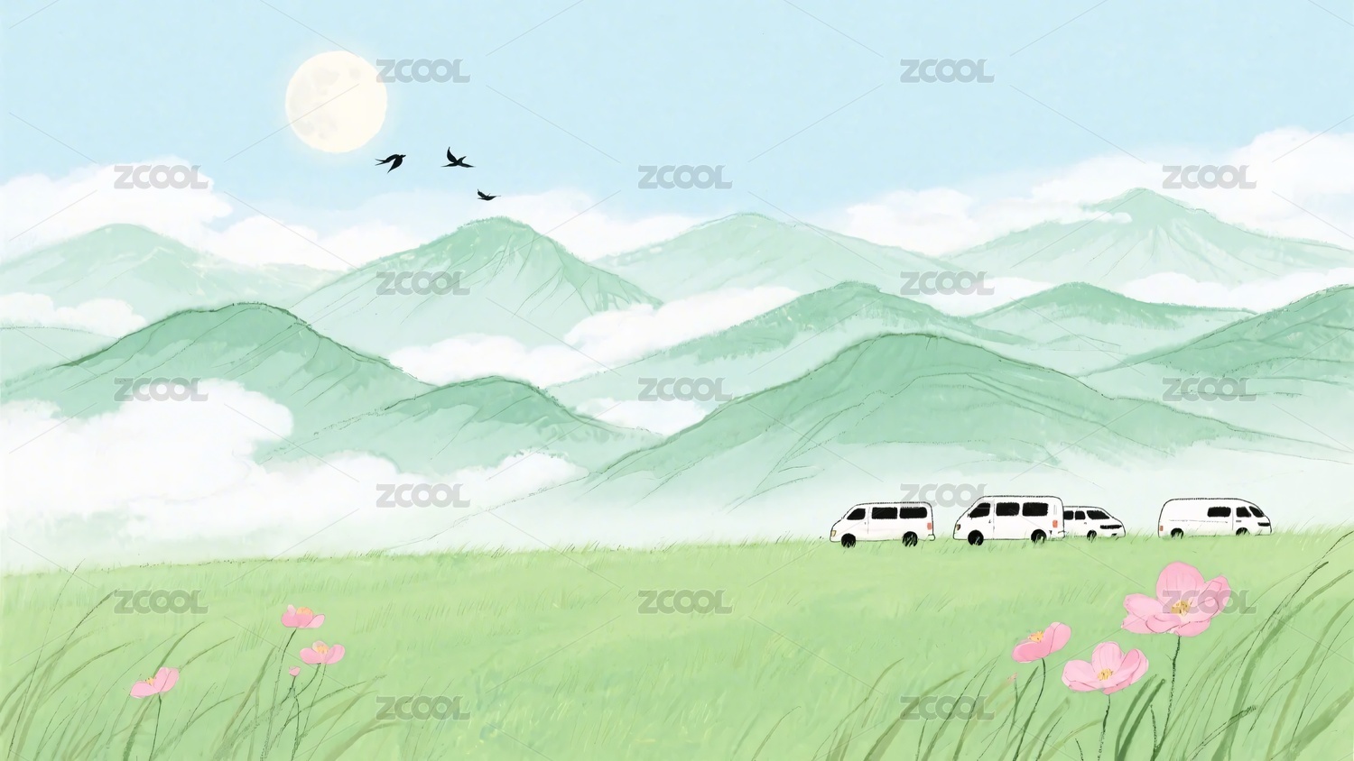 草原山水风景插画