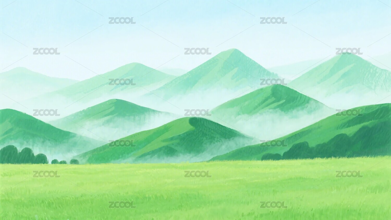 清新绿色山峦草地风景图