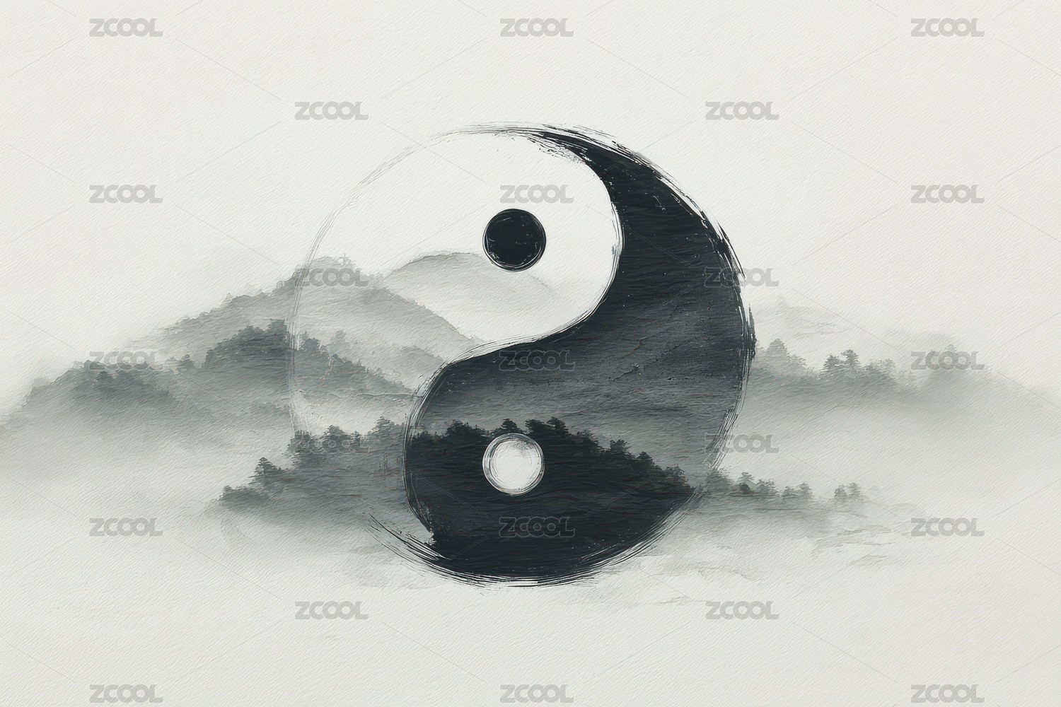 太极,阴阳,水墨风,道家,哲学,平衡,和谐,背景,流动,能量