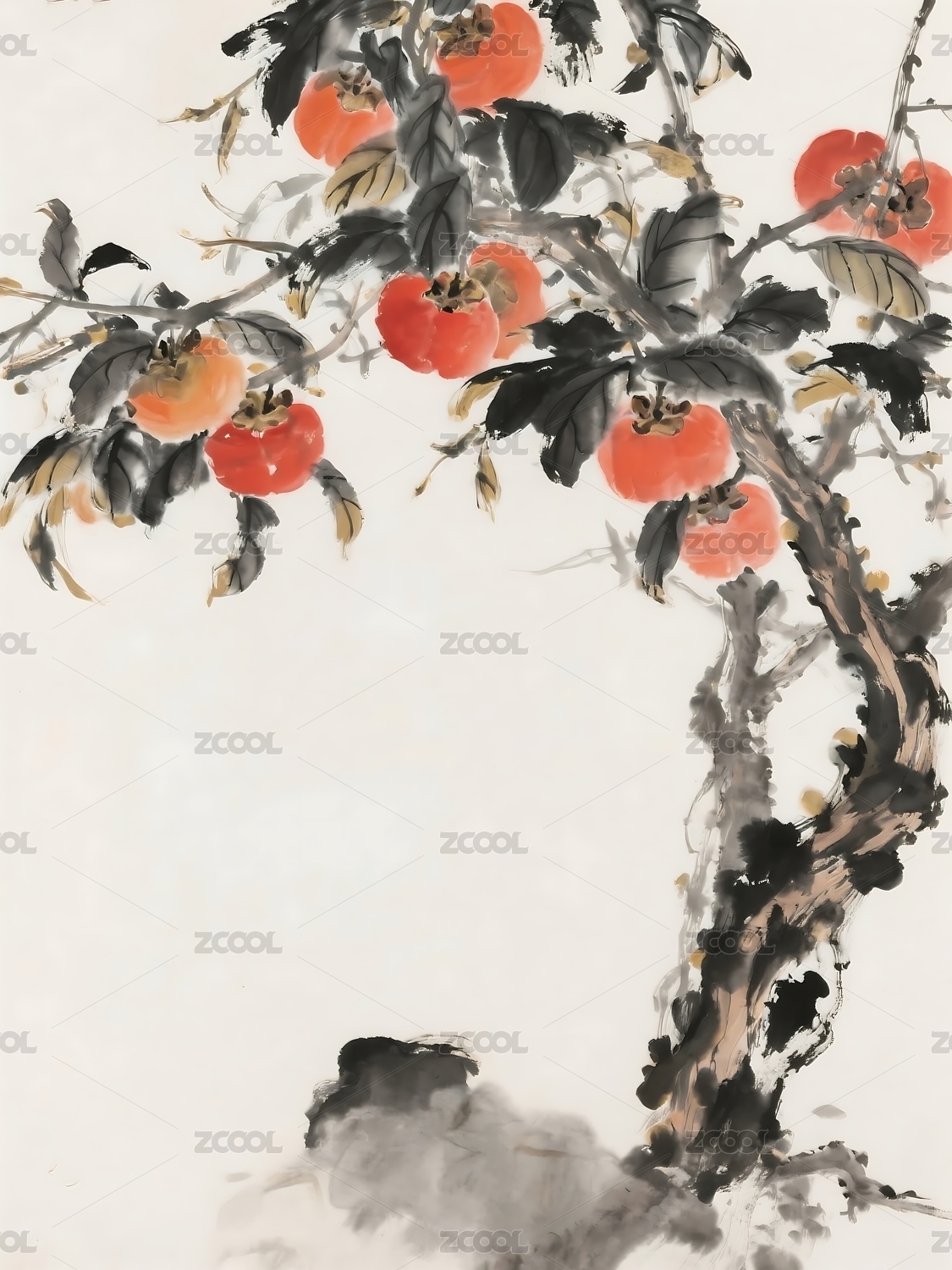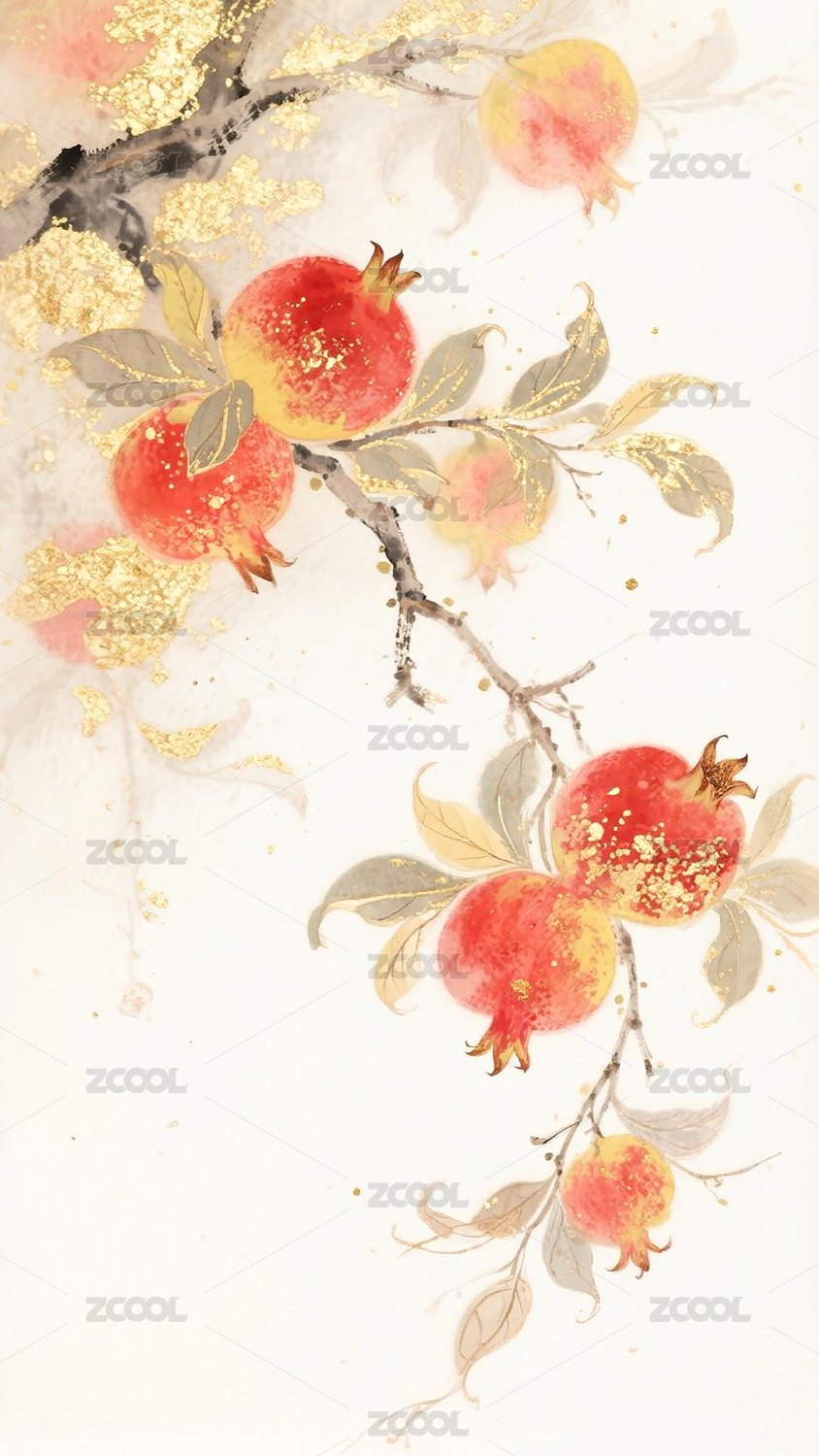 石榴,水墨画,国画,果实,吉祥,如意,多子多福,中国风,传统文化,艺术