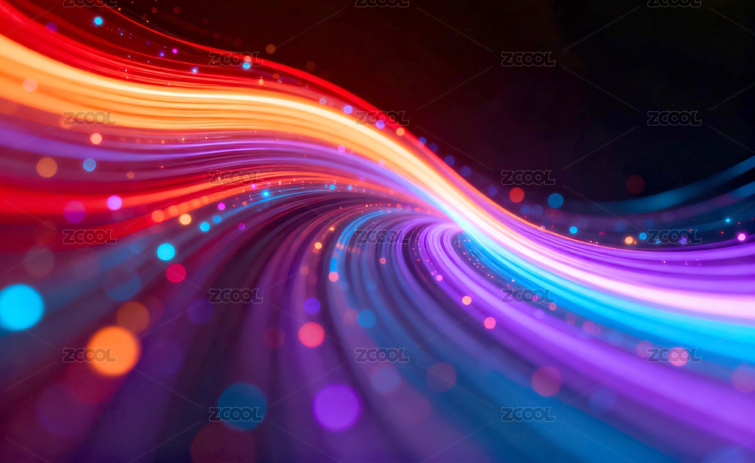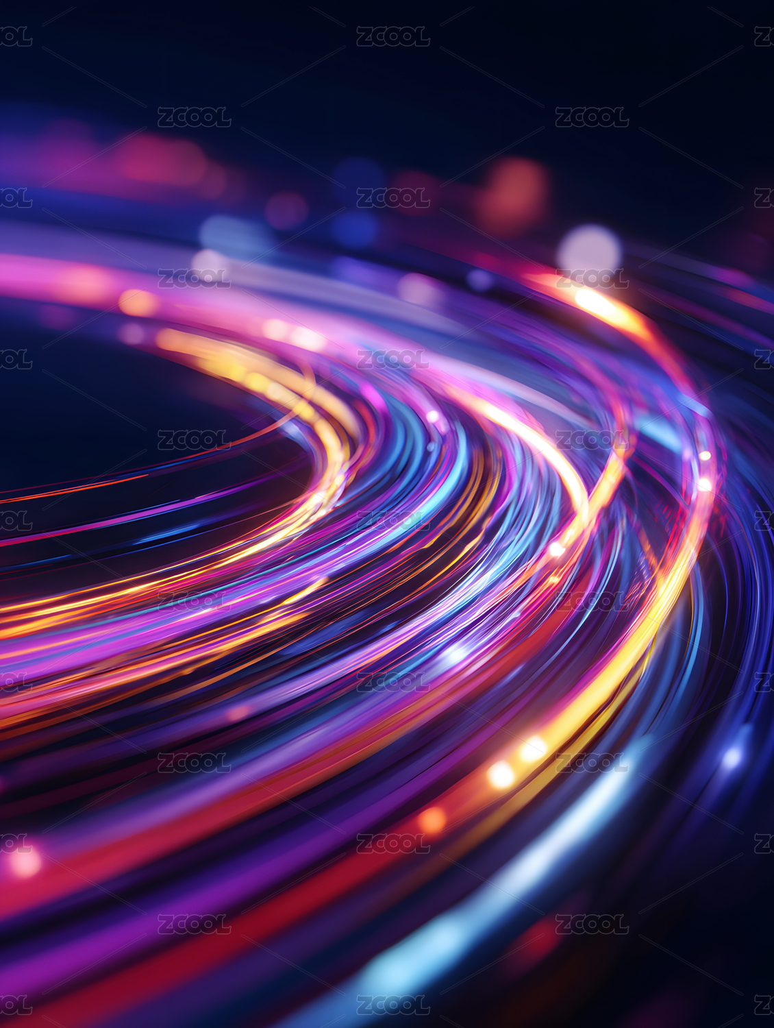 流光溢彩的公路发光彩色速度线黑色背景插画