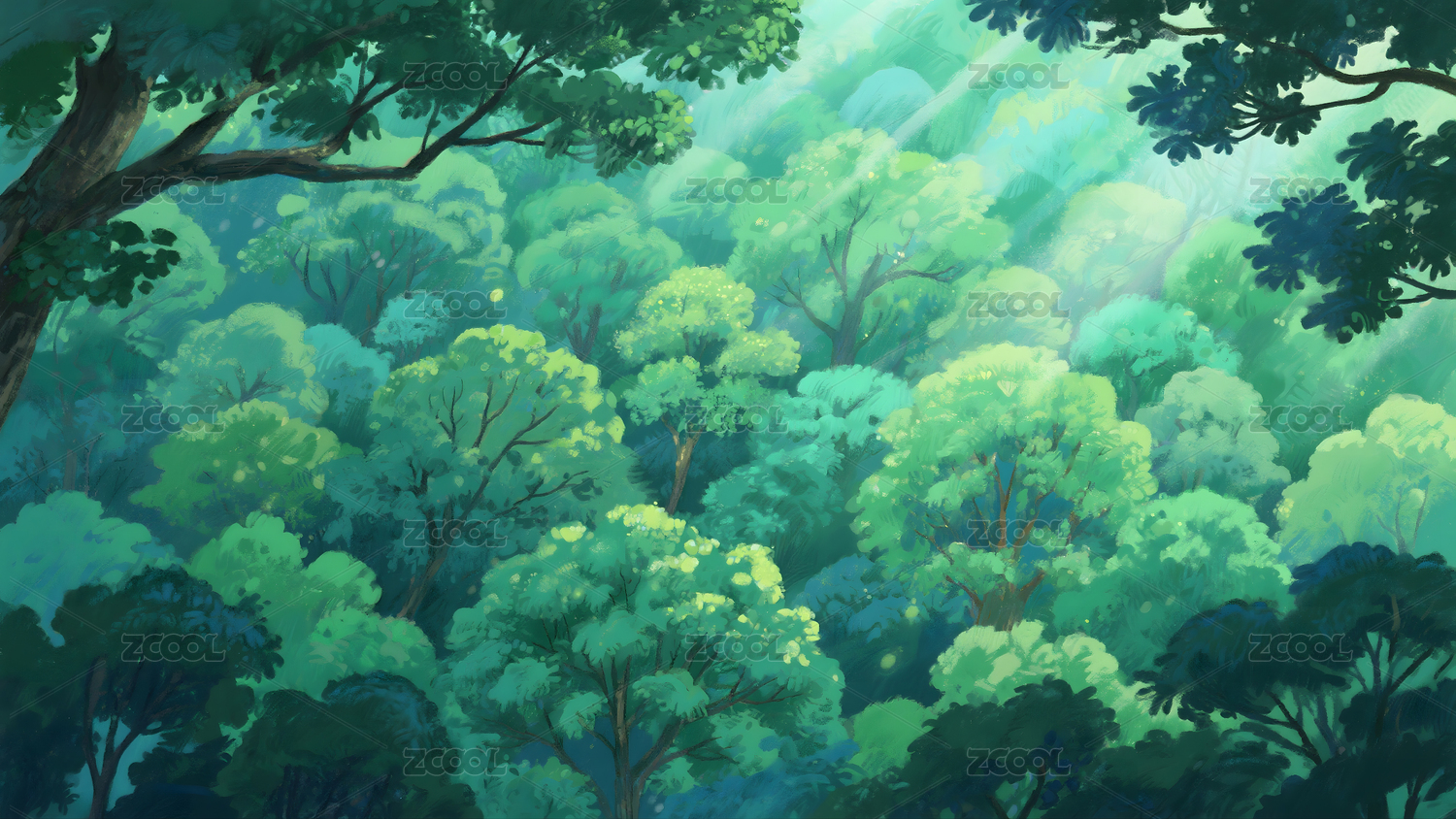 复古,神秘,树,大树,树叶,背景,绿色,插画