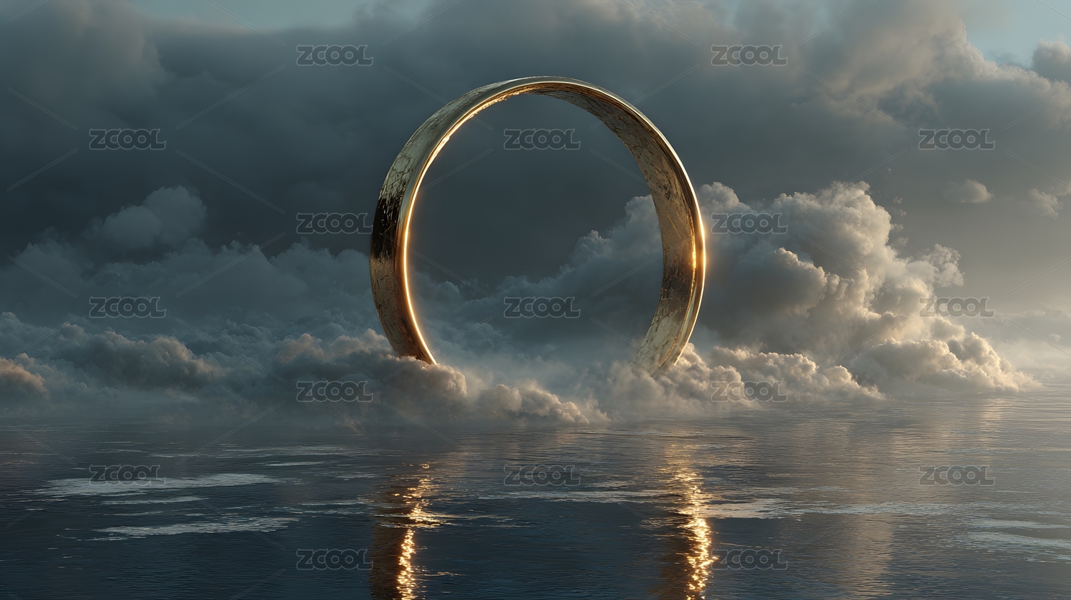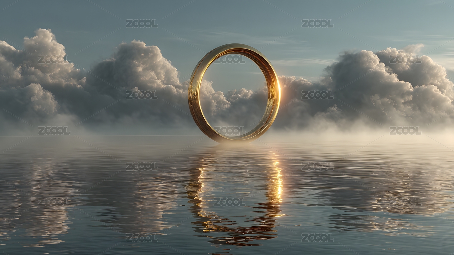 浪漫,静谧,艺术,梦幻,唯美,三维,立体,倒影,金色,抽象