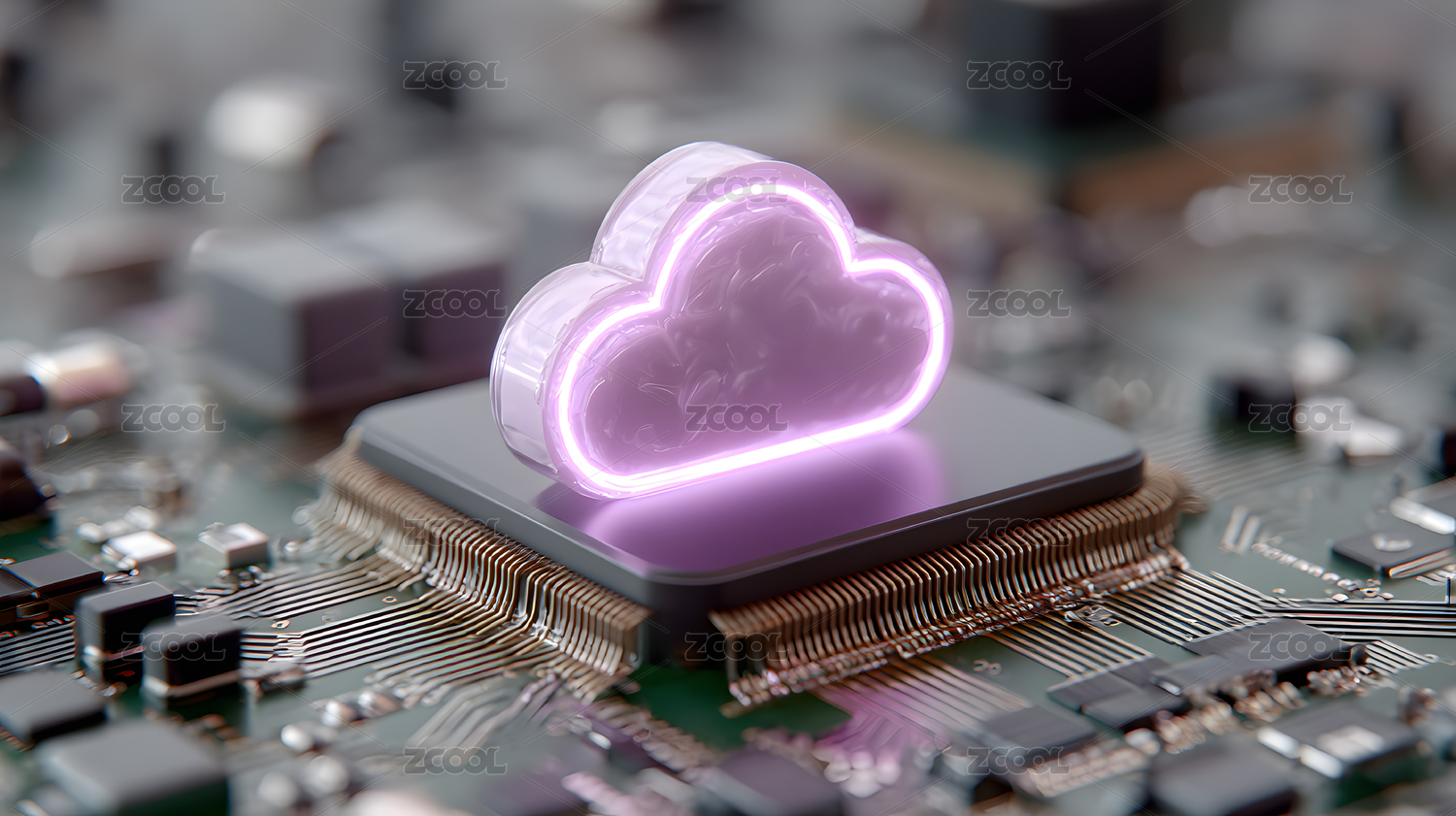 芯片上发光的云朵 科技感十足