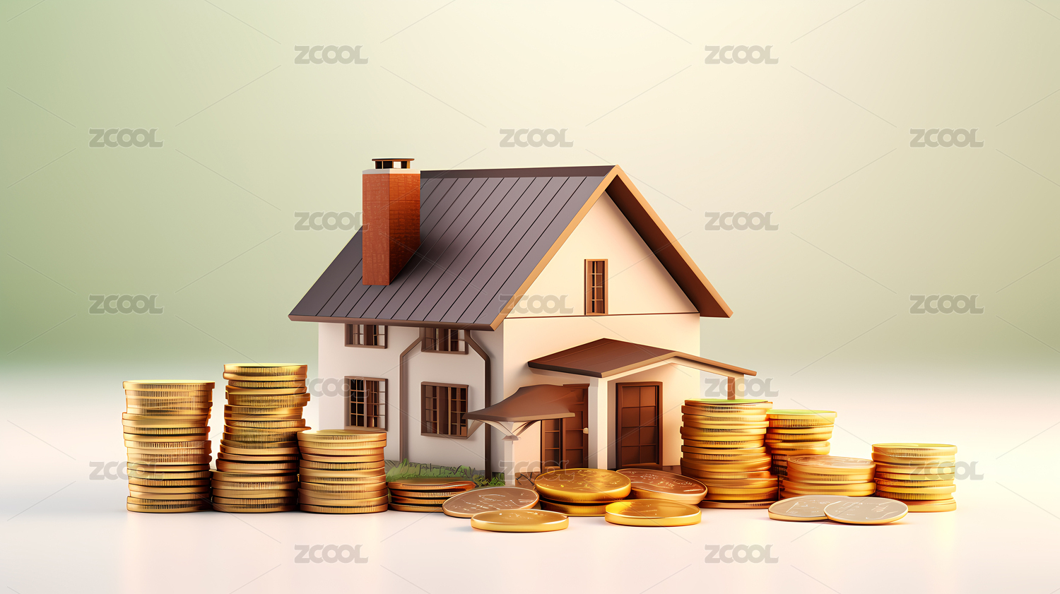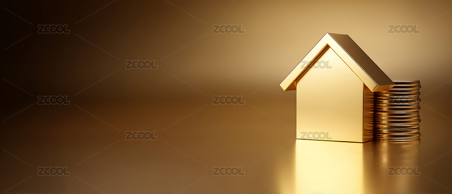 金色房屋模型与硬币金融3D素材