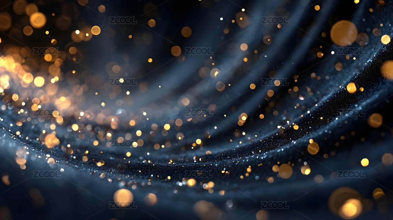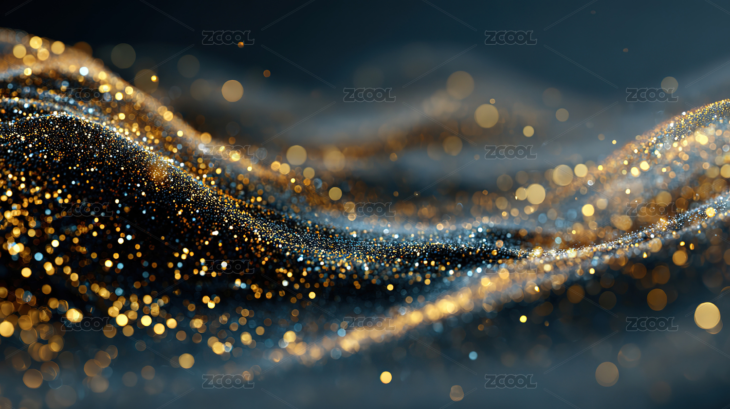 金色碎钻洒在深蓝色波浪纹背景上
