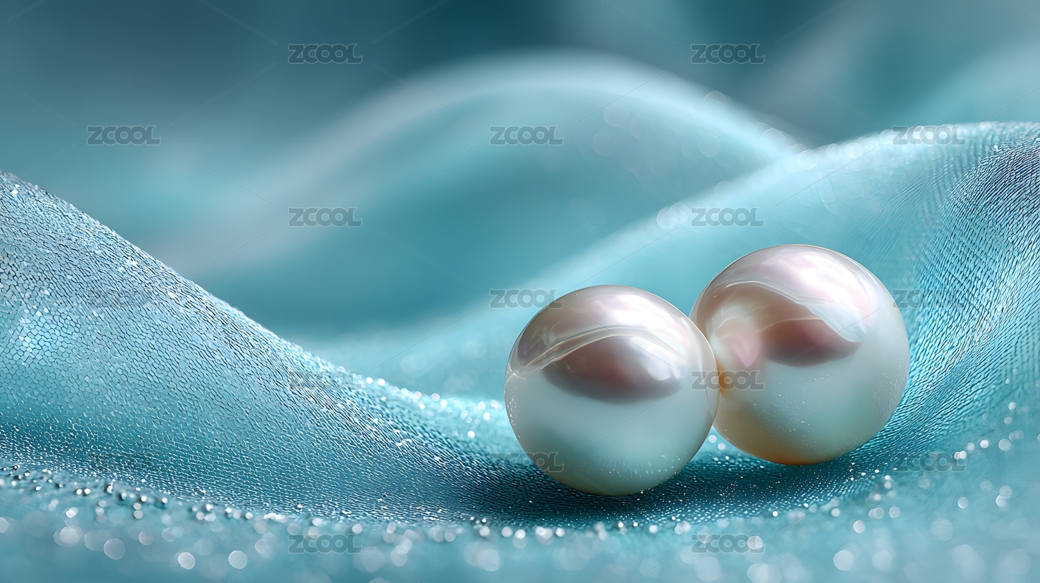 珍珠宝石静卧蓝绸 细腻柔美意境