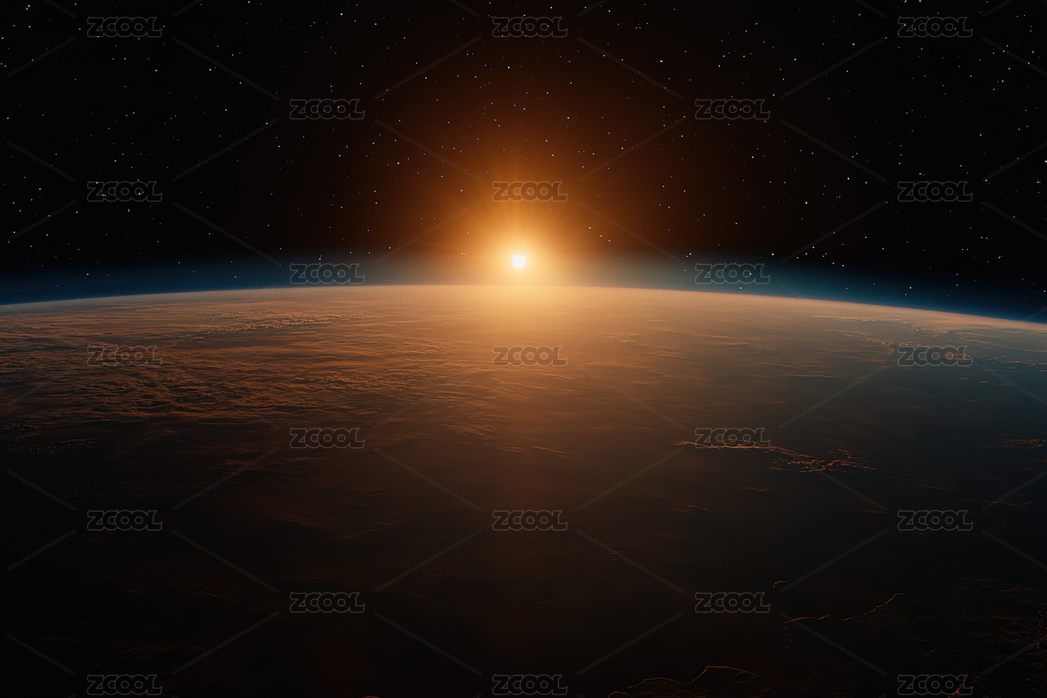 太阳光芒洒在地球边缘地球日出景象