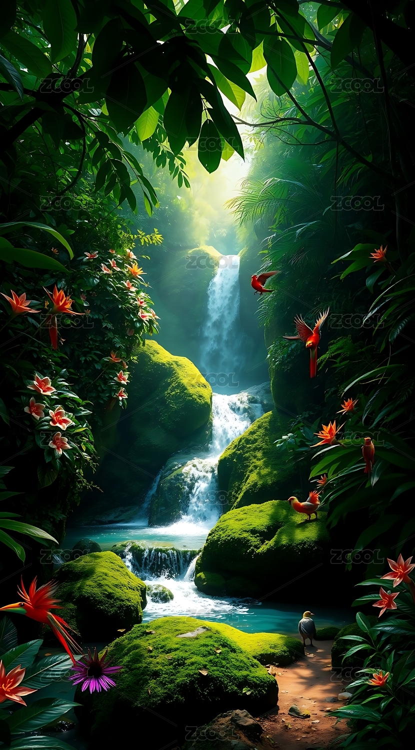 翠林深处的飞瀑 绿野仙踪的自然奇观