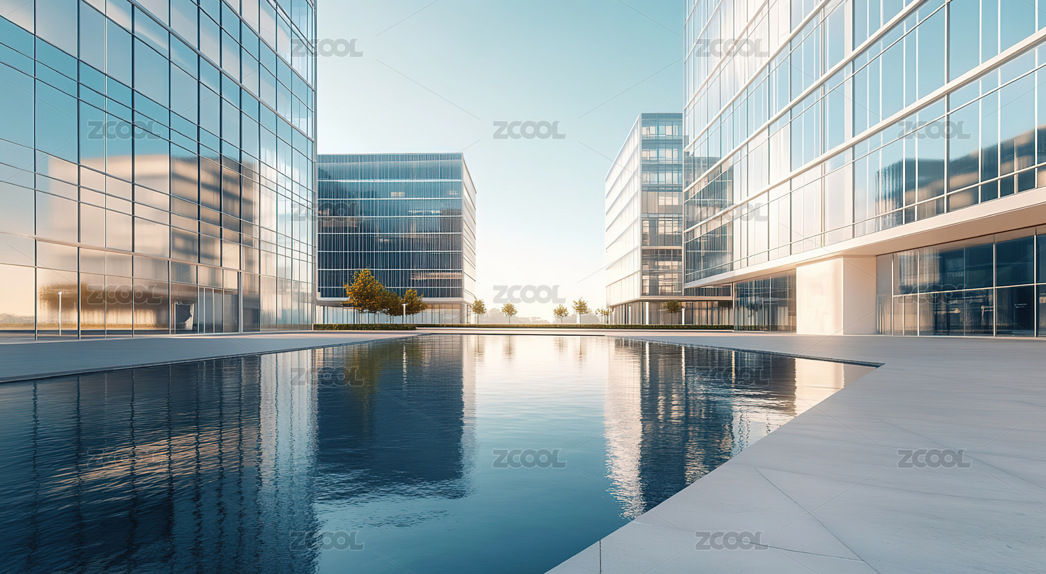 现代建筑外观阳光明媚的蓝天玻璃幕墙