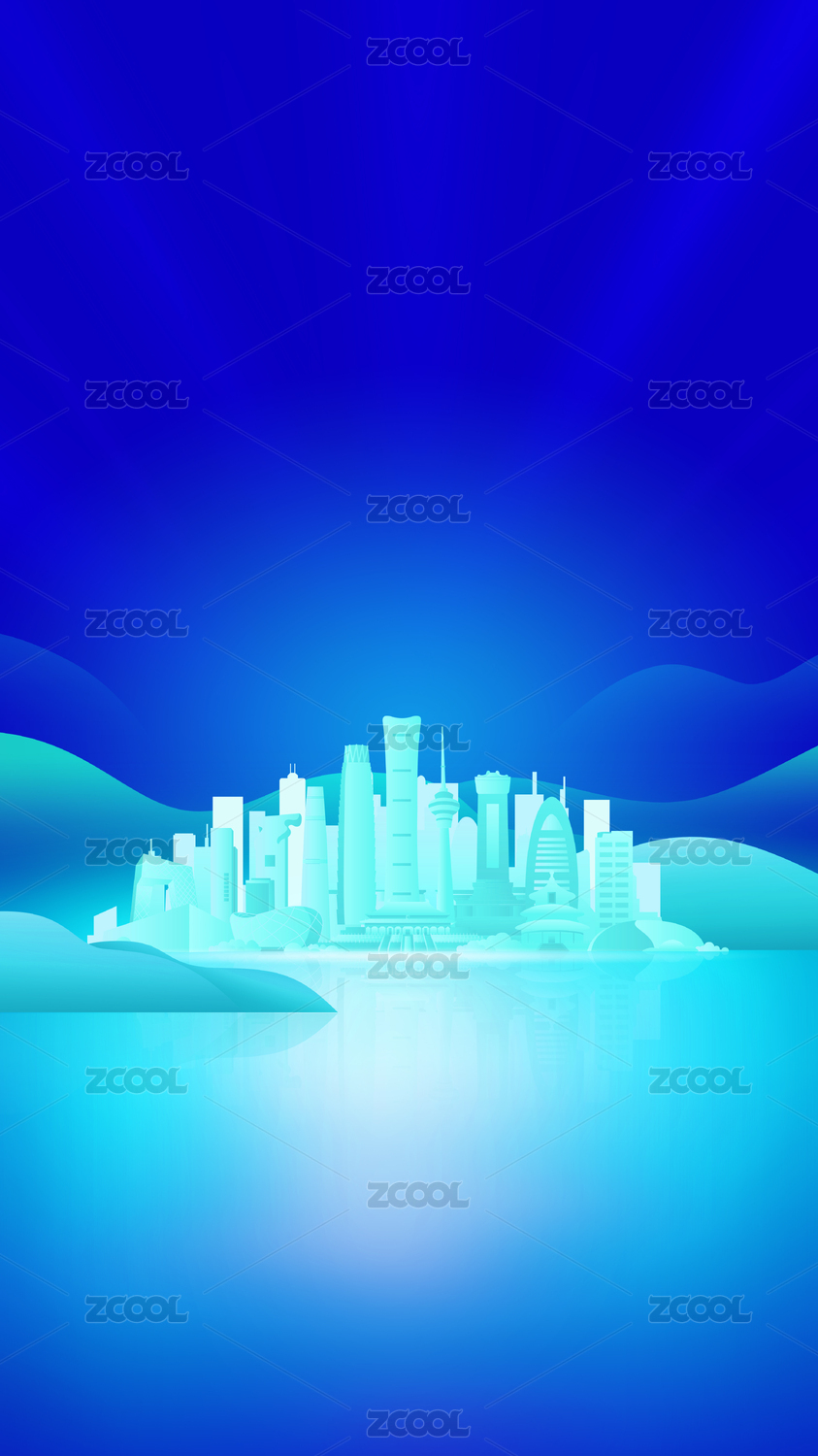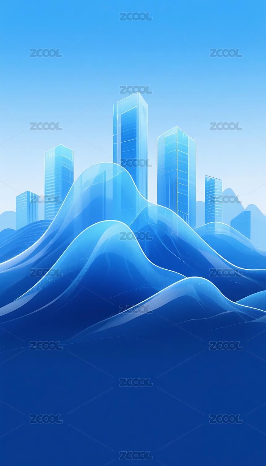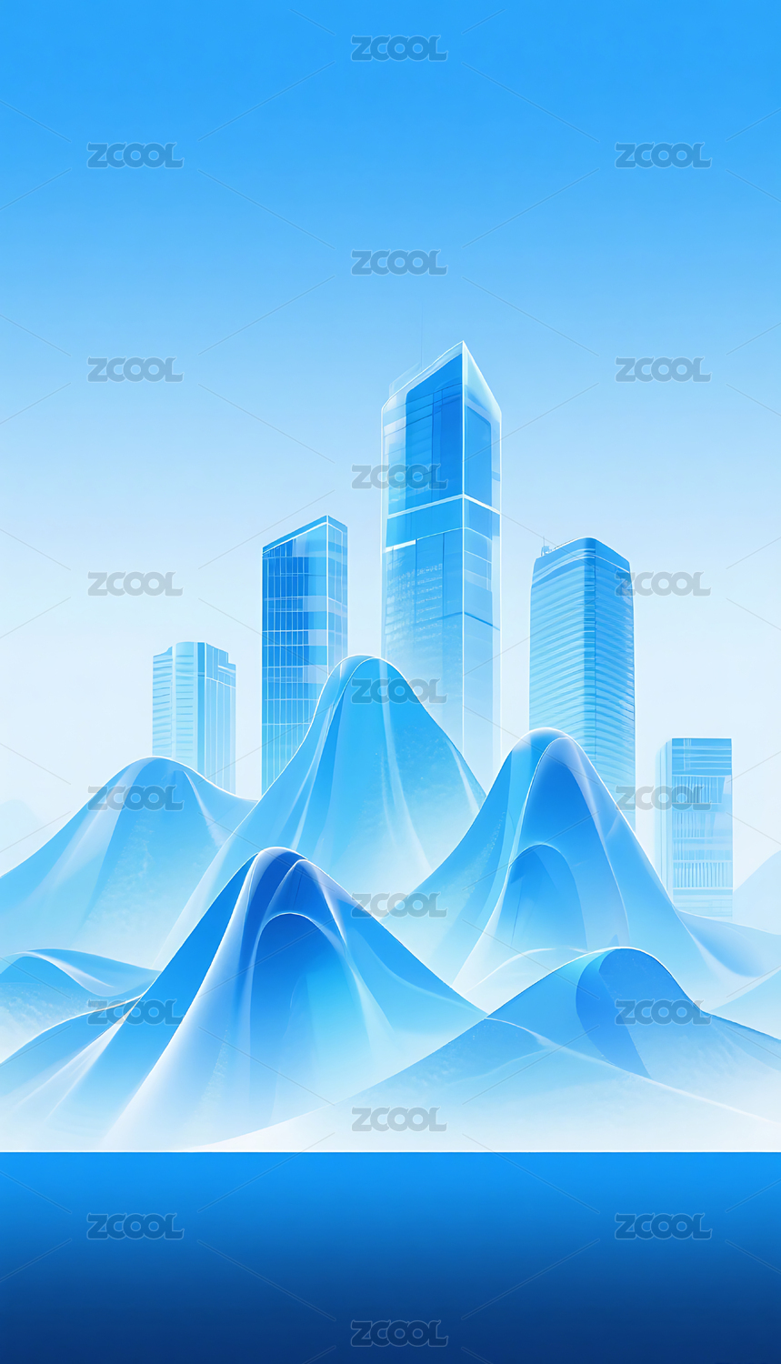 蓝色渐变简约半透明城市建筑山峰背景
