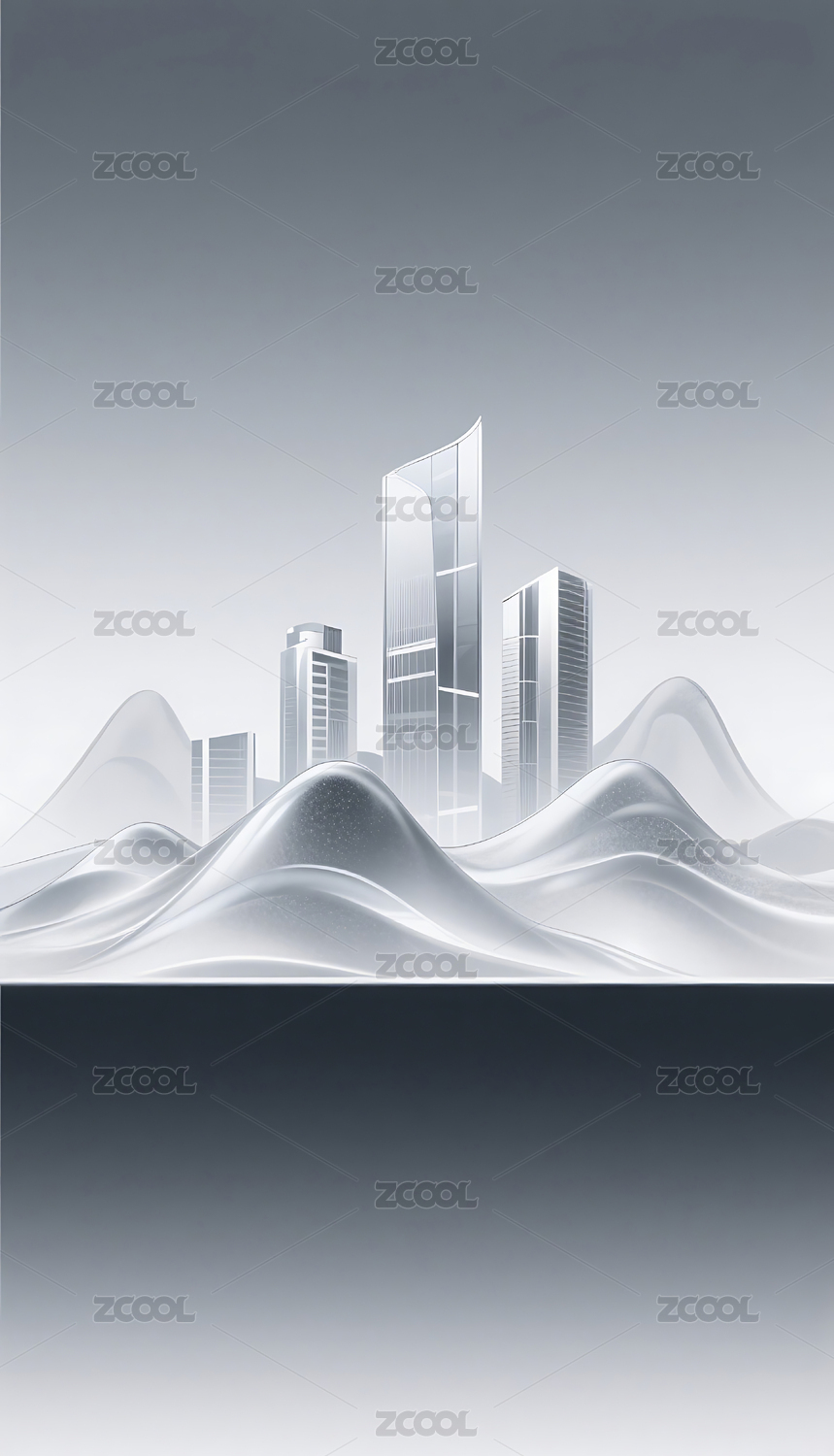 银色渐变简约半透明城市建筑山峰背景