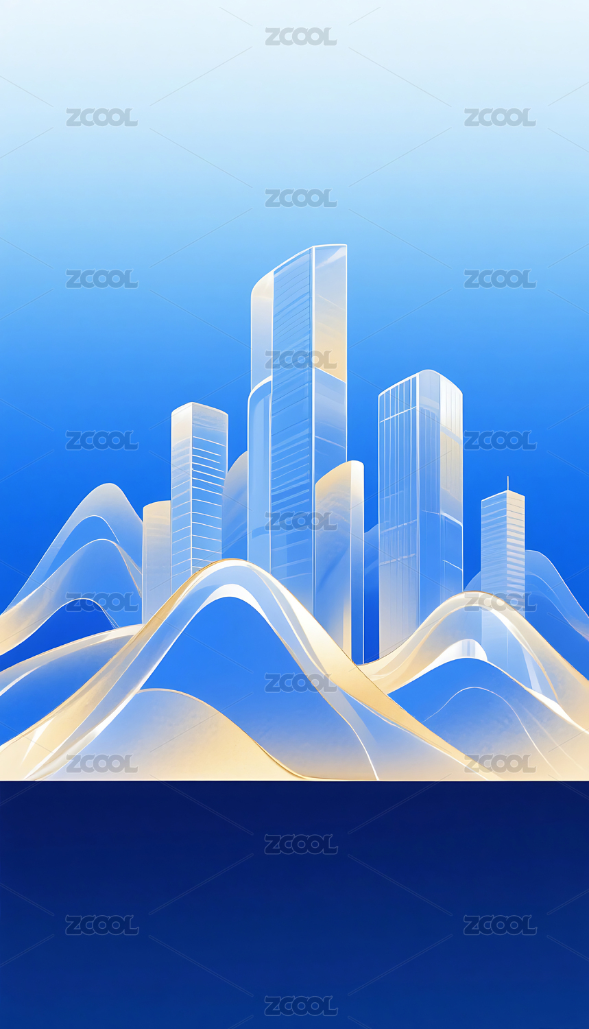 蓝金色渐变简约半透明城市建筑山峰背景