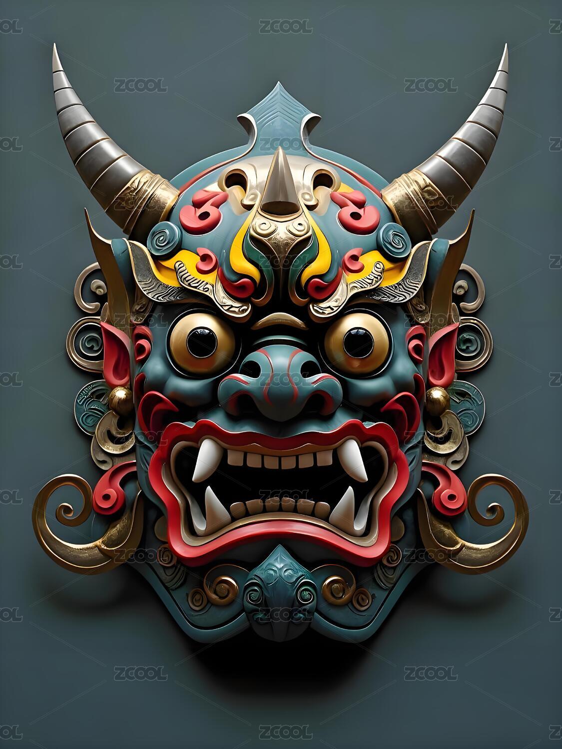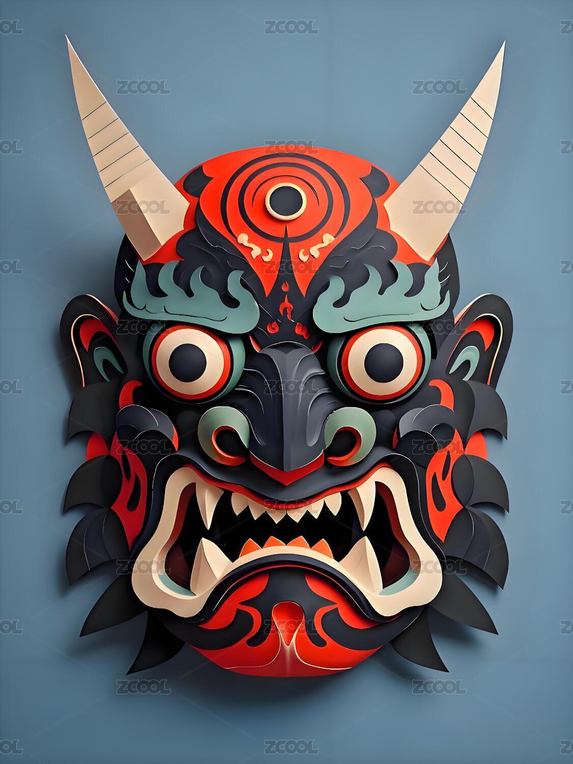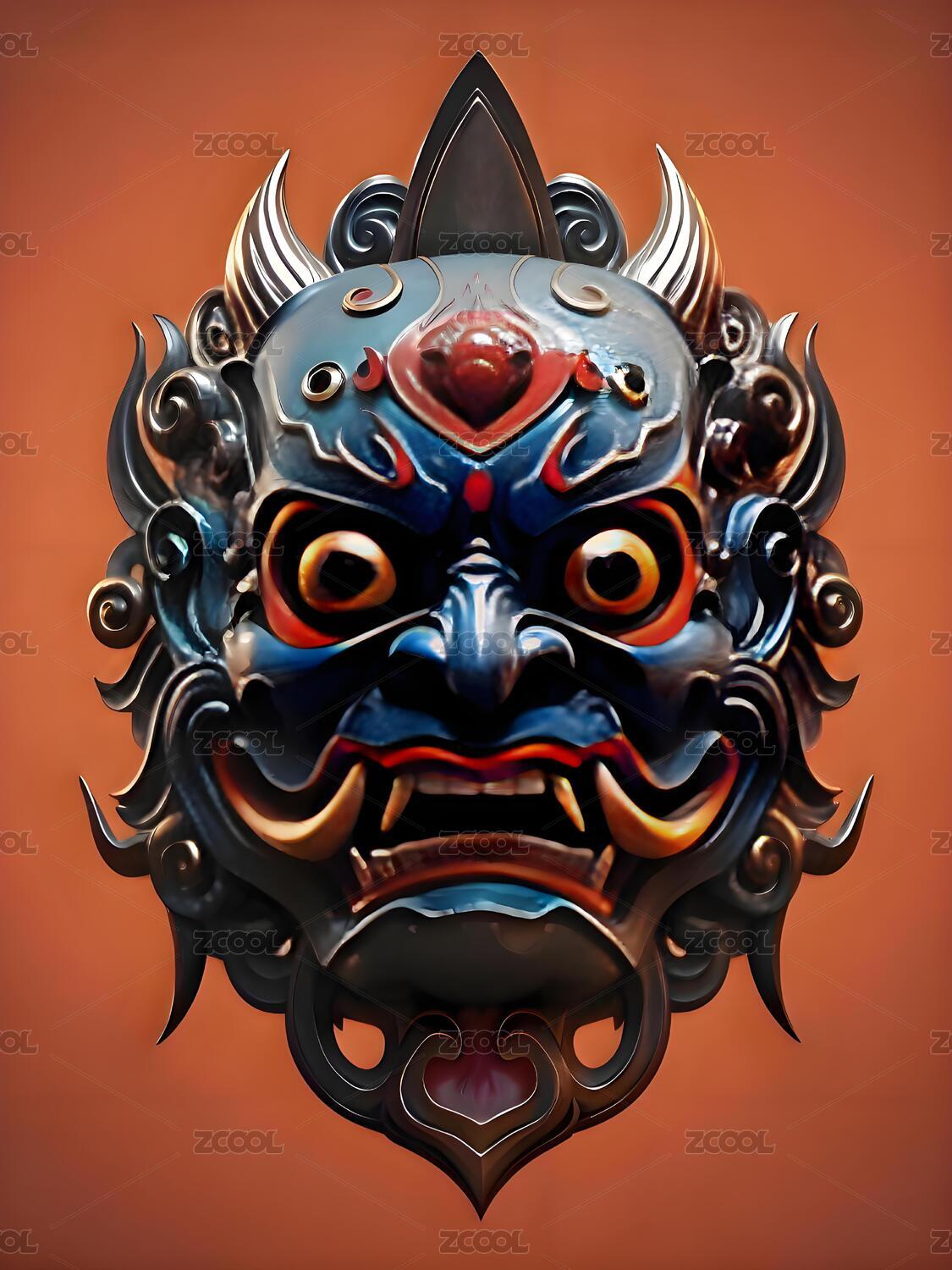 面具, 红色, 蓝眼, 鬼魂, 台座