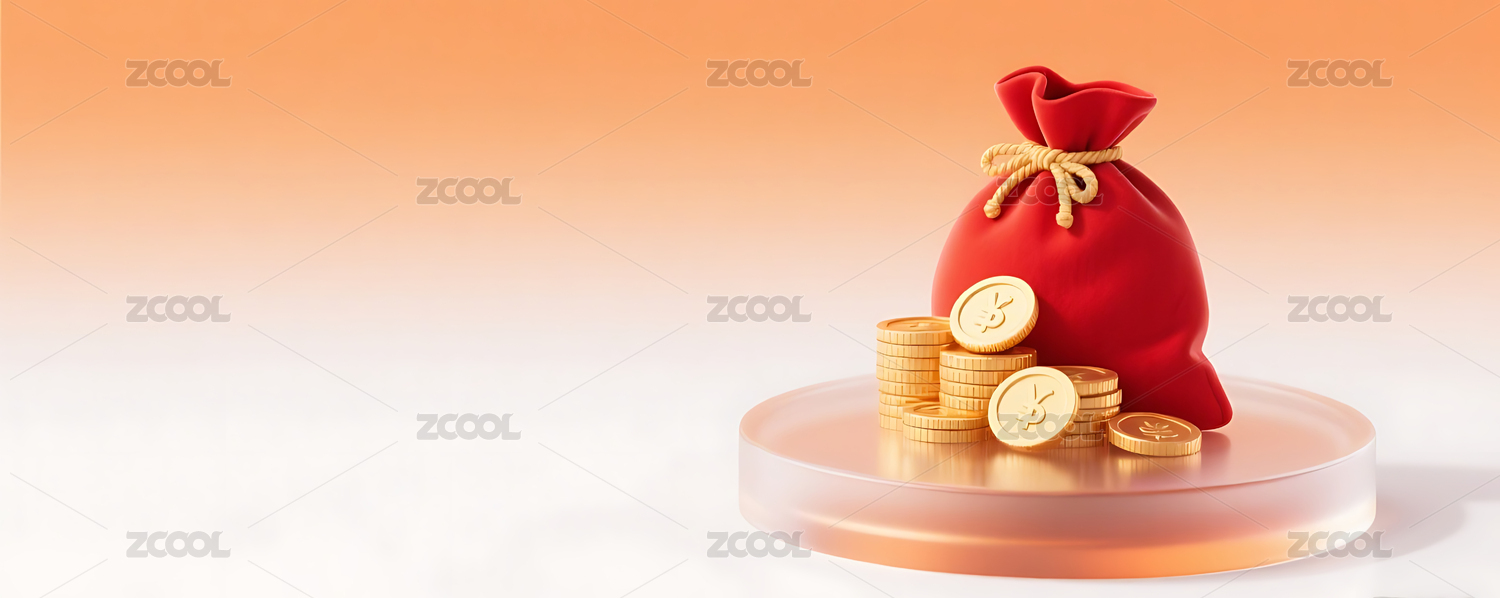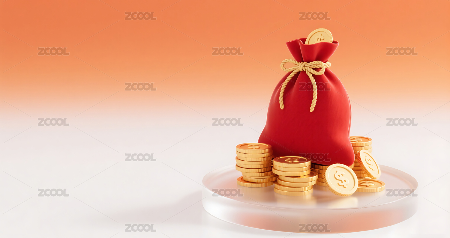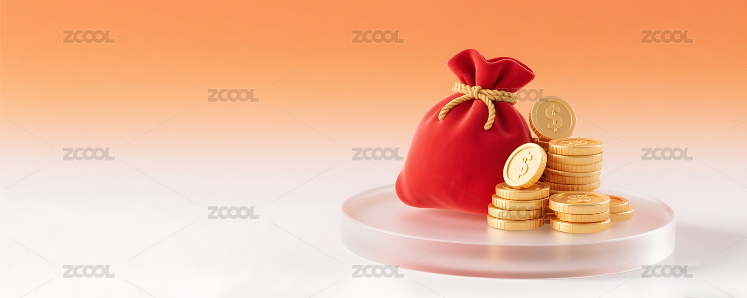 钱袋,金币,模型,底座,背景,渐变,红色,橙色背景