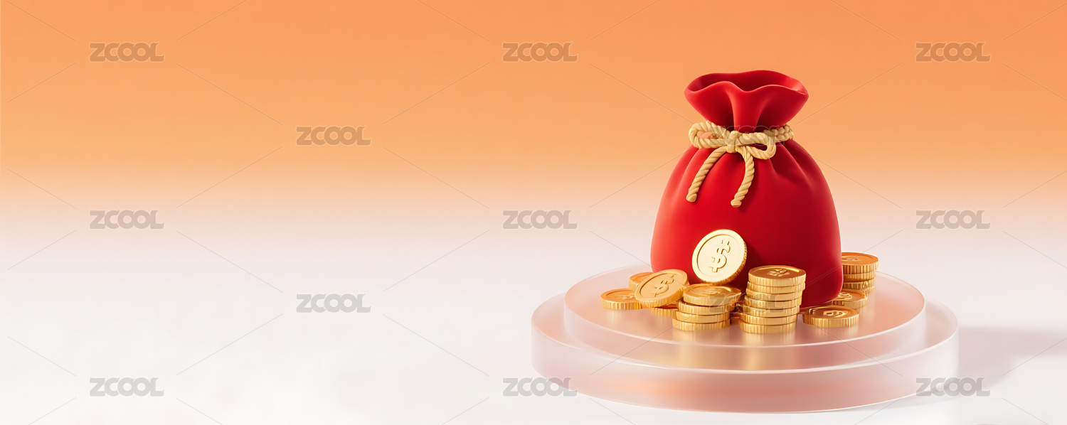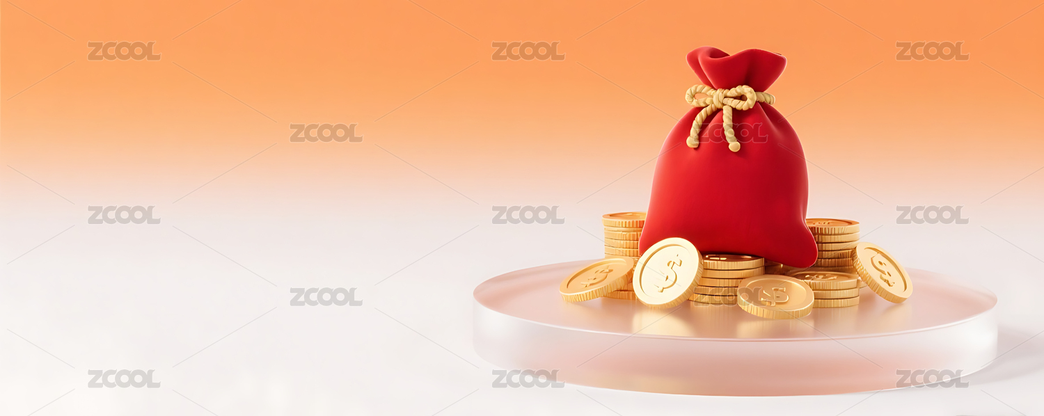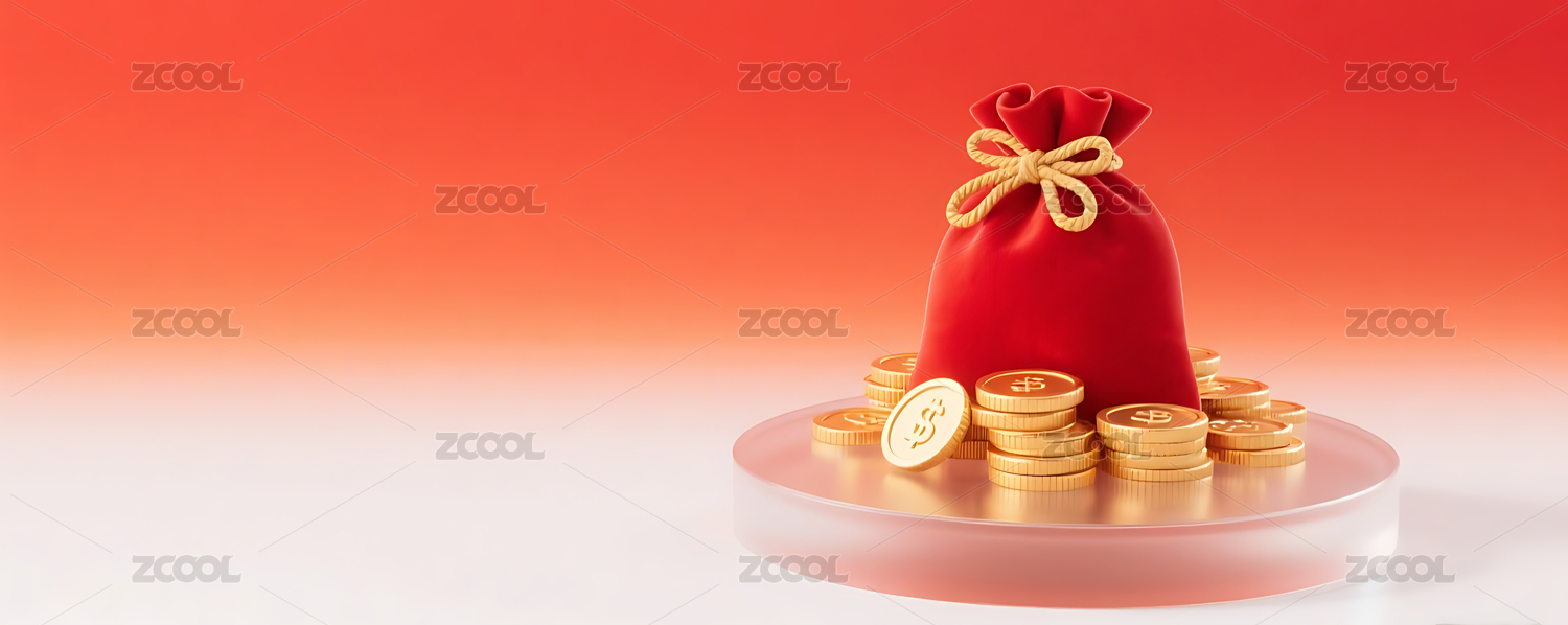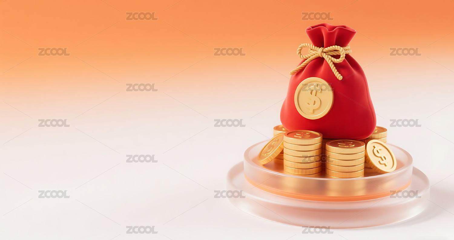 钱袋,金币,模型,底座,背景,渐变,红色,橙色背景