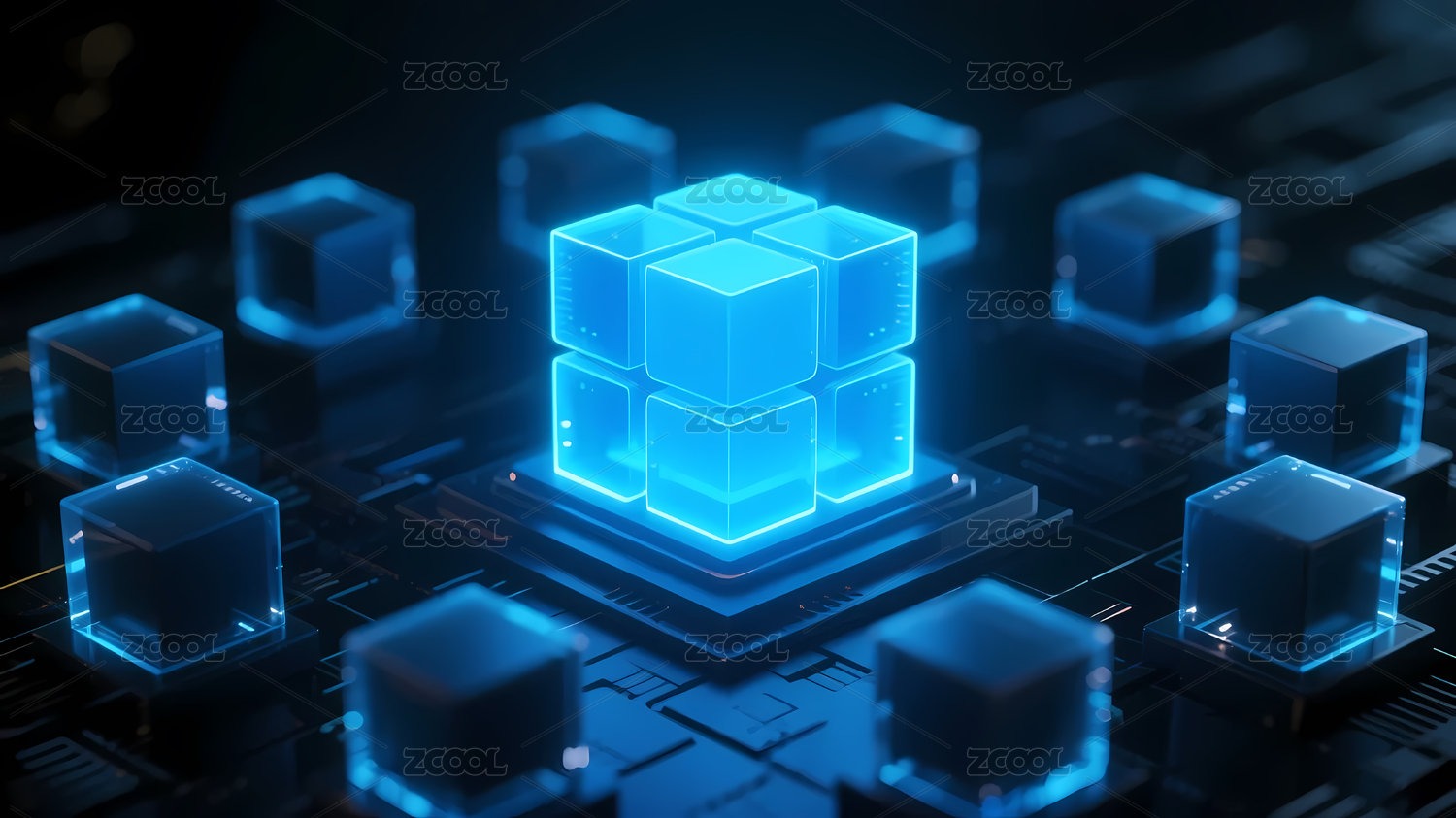 科技感十足的蓝色立方体