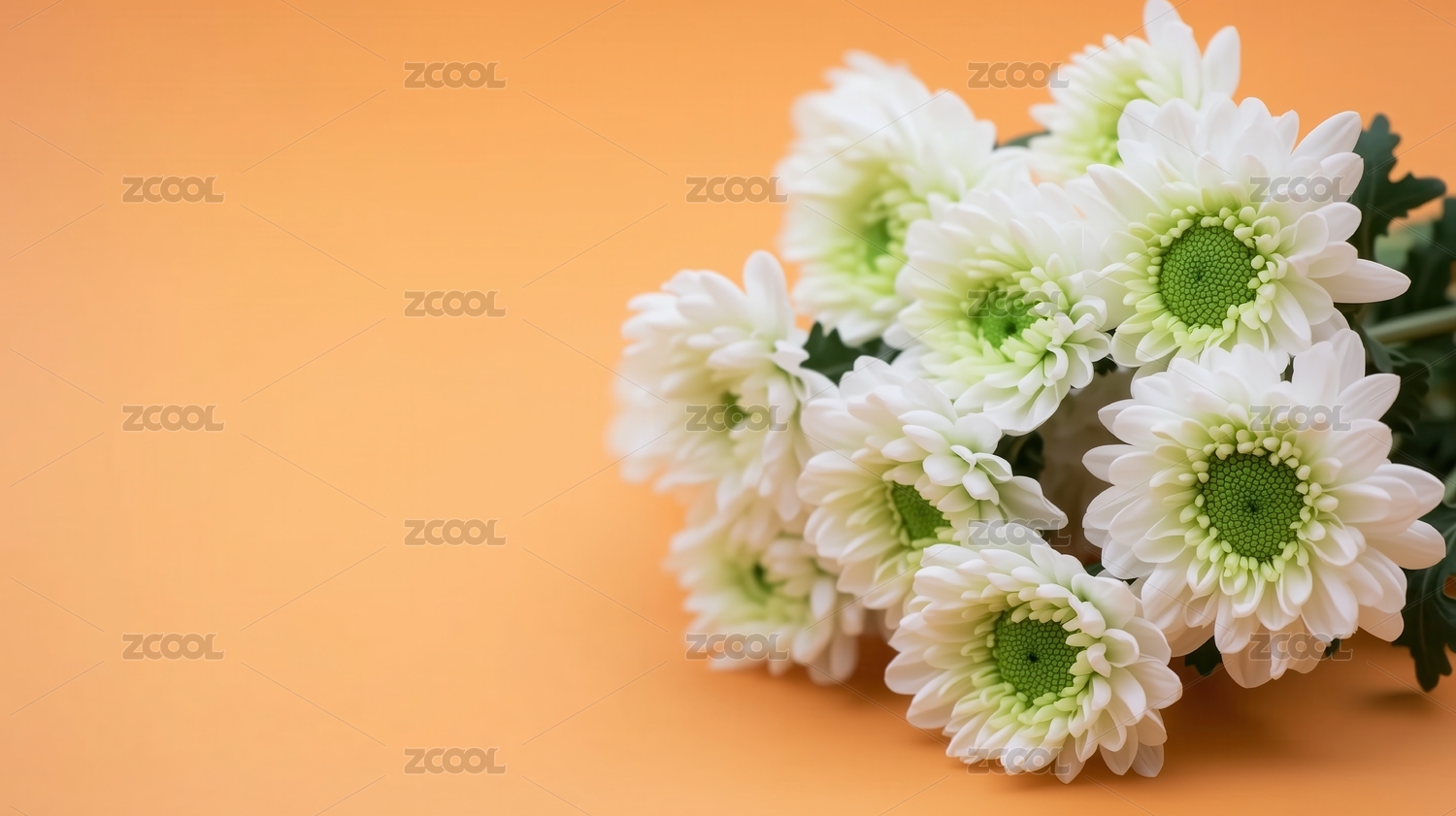 淡橙色背景上的白色菊花