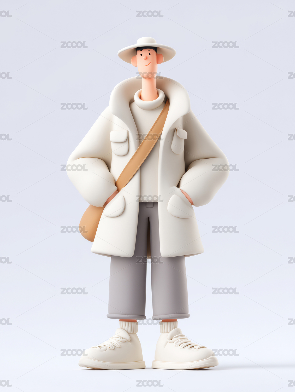 一个戴帽的3D人物站立