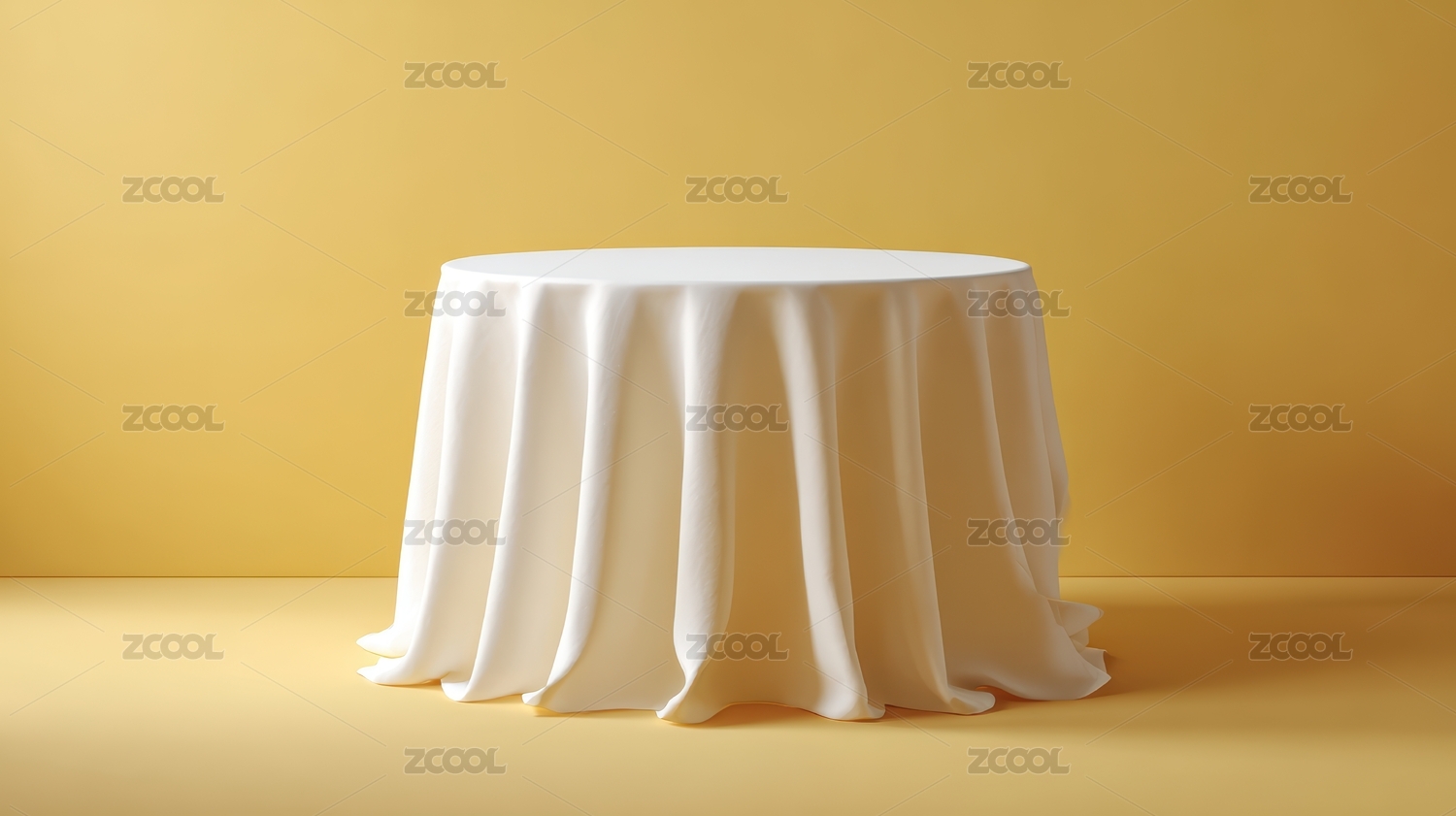 白色桌布覆盖圆桌黄色背景