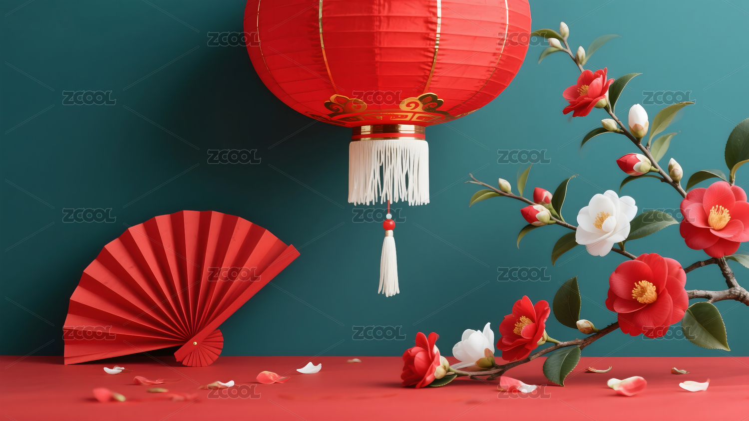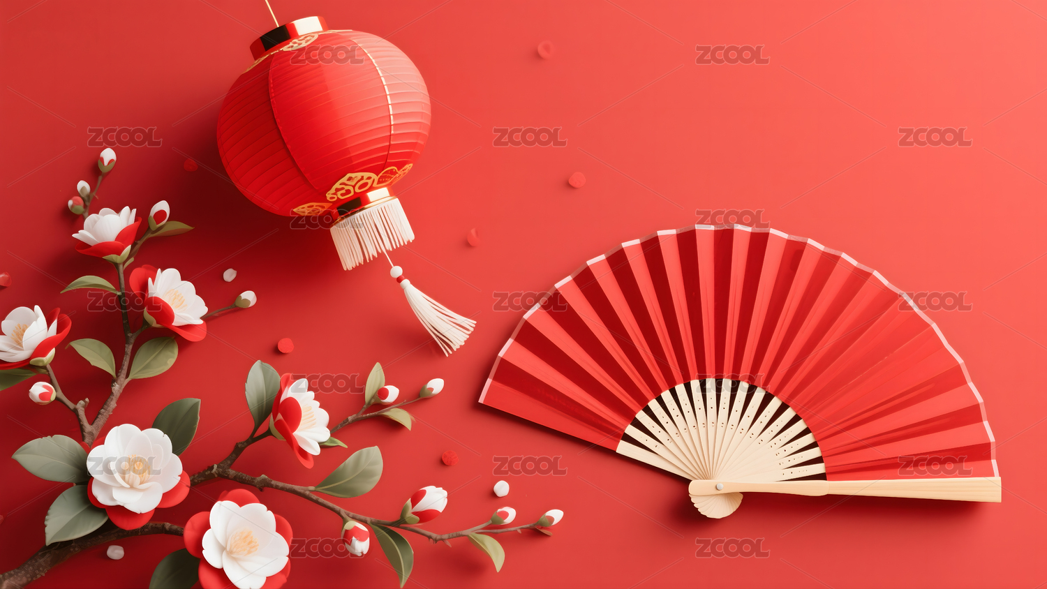 春节,中国风,节日,喜庆,红色,灯笼,扇子,梅花,传统,装饰