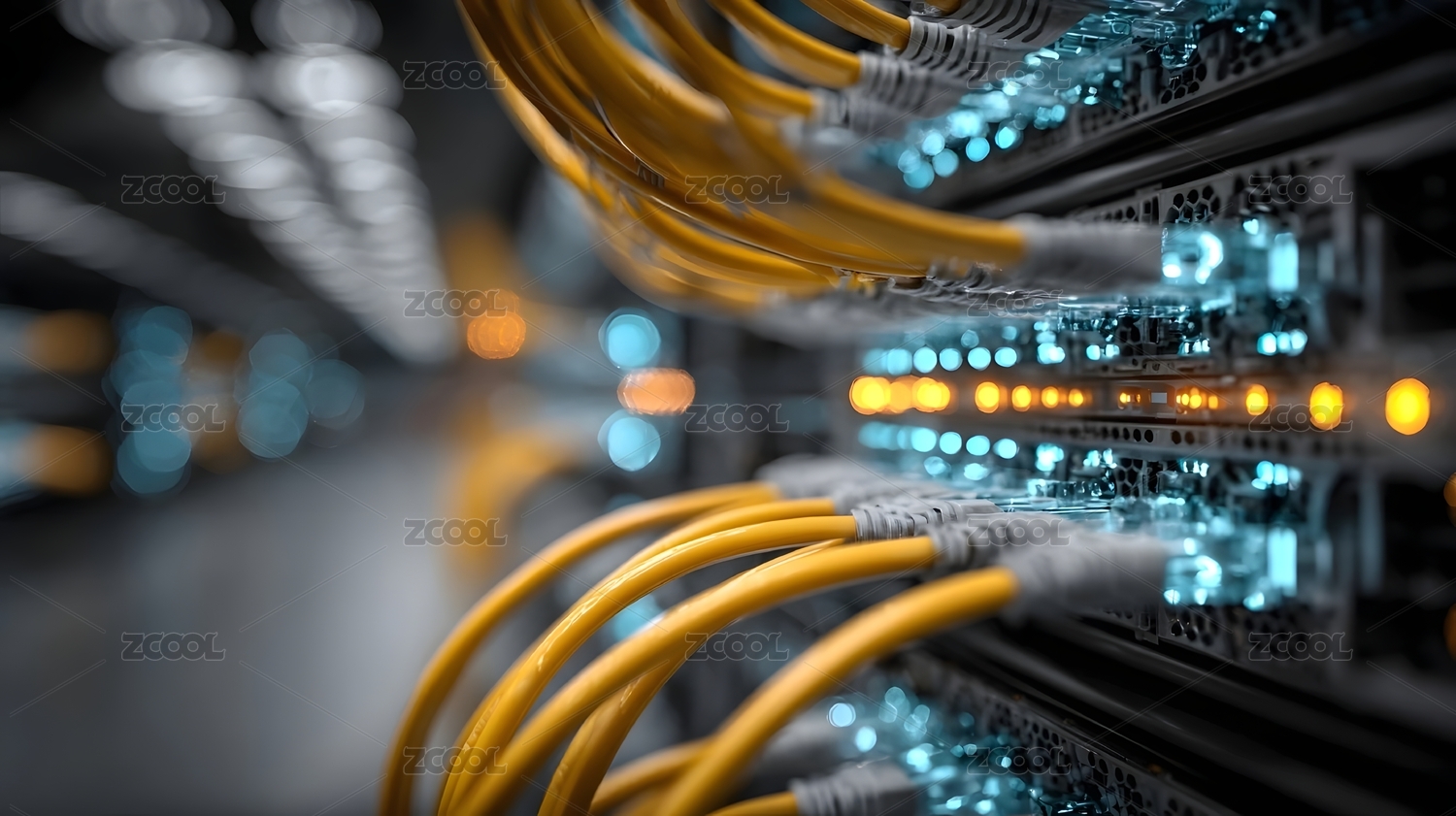 蓝色,科技,机柜,服务器,线缆,机架,电缆,黄色,接口,网络