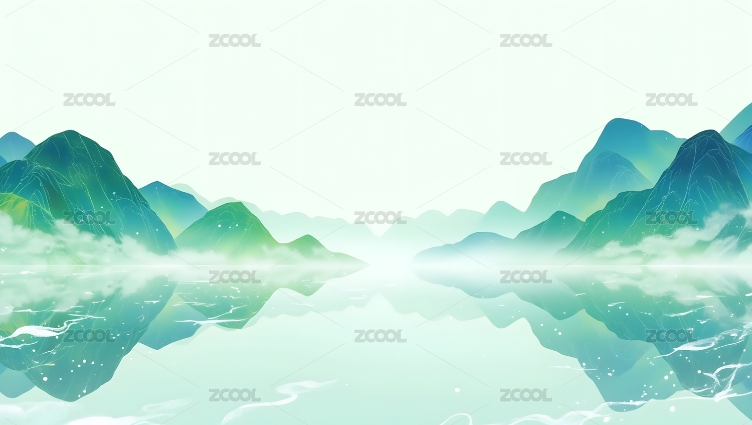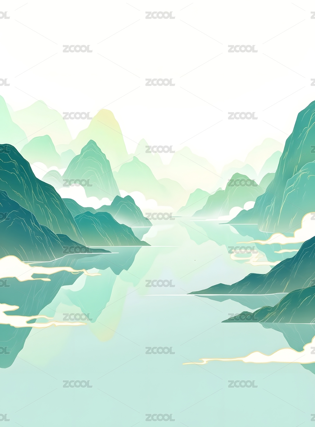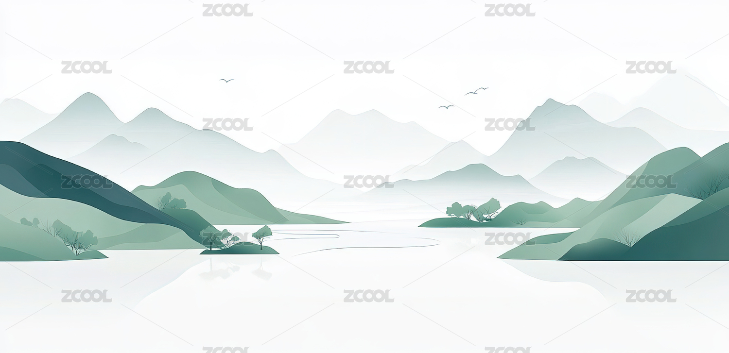 山水,湖泊,插画,风景,自然,绿色,矢量,画面元素,主题,元素