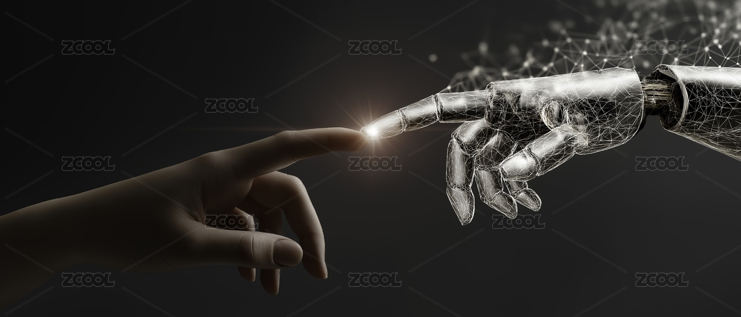 机器人手指触碰科幻氛围