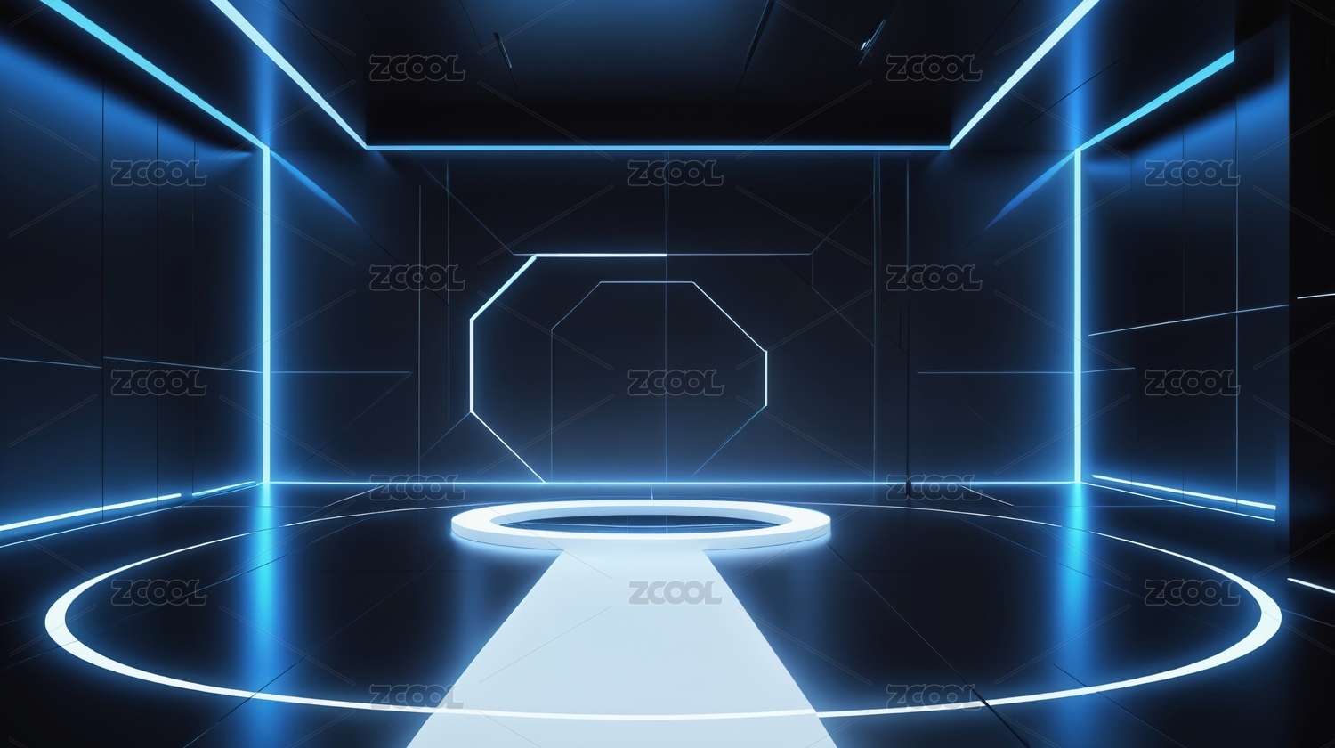 蓝色科技感未来感舞台灯光环绕