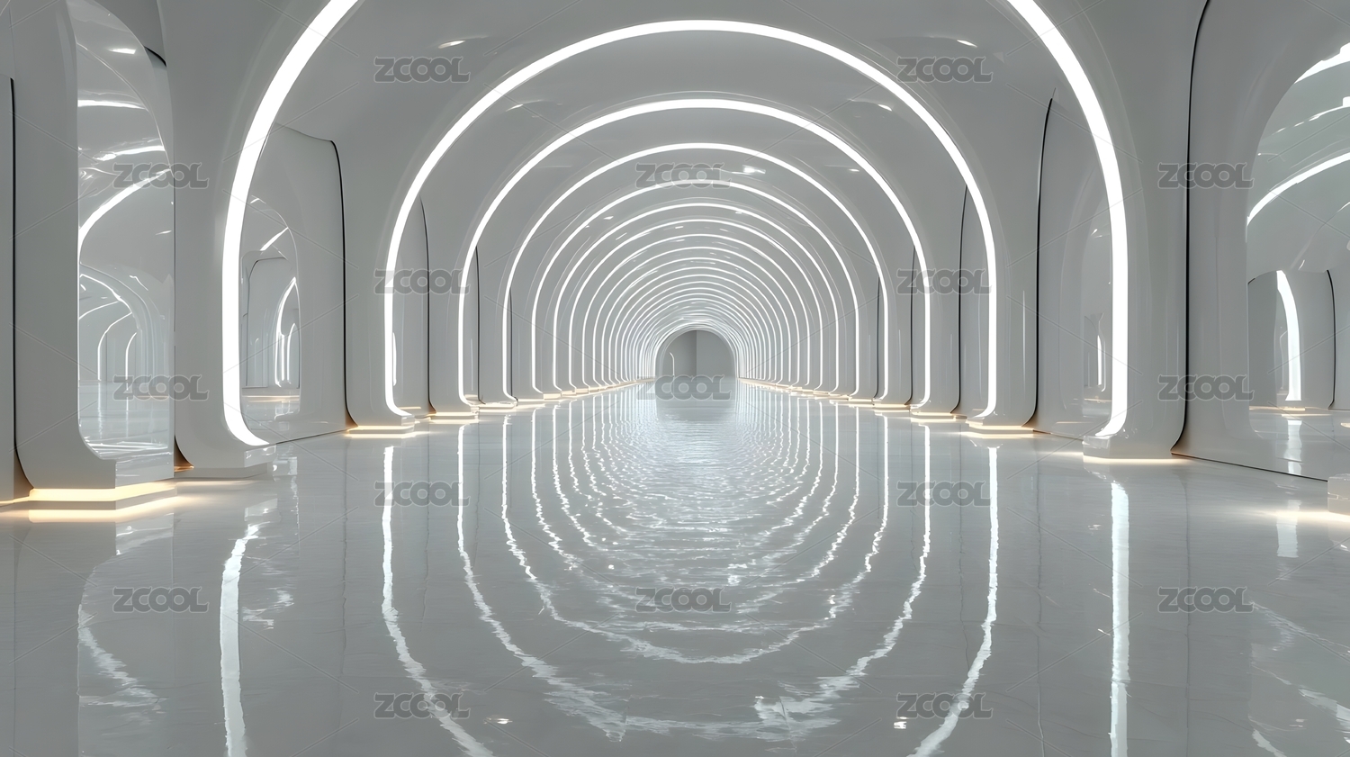 未来感白色隧道空间