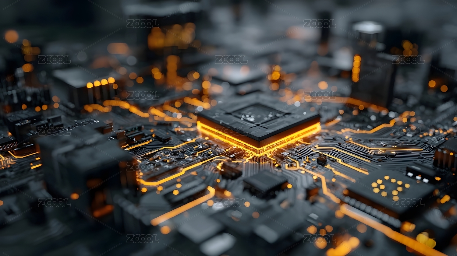 科技感电路板与城市夜景融合