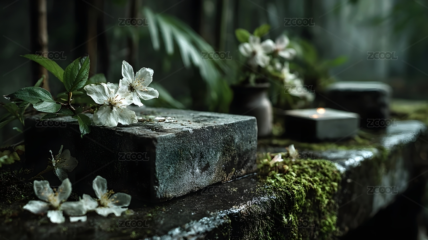 苔藓石头展台背景