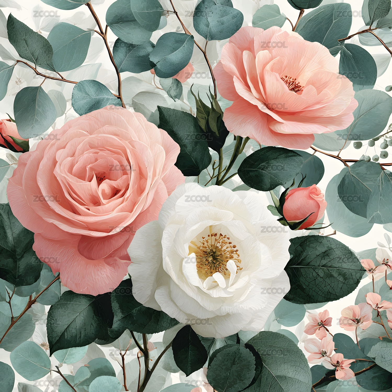 优雅玫瑰花卉图案