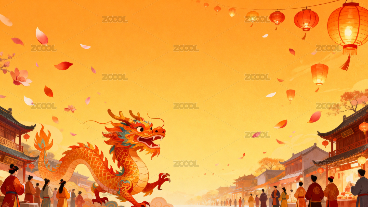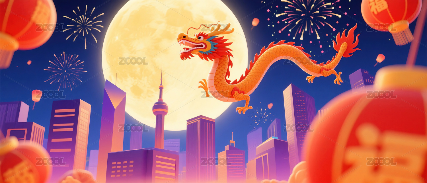 3D,三维,龙,灯笼,建筑,背景,古建筑,月亮