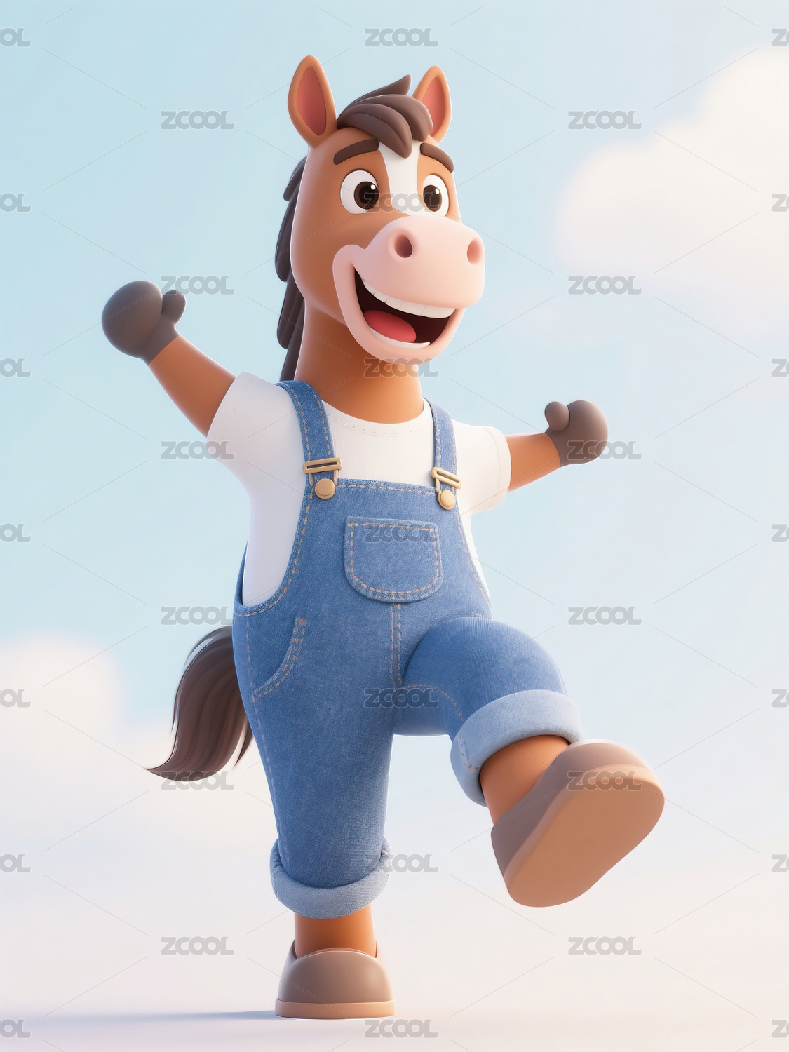 三维,3D,牛仔裤,背带裤,牛仔,马,马年