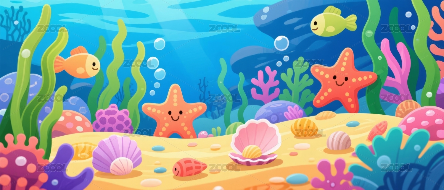 海洋生物多彩风海底场景