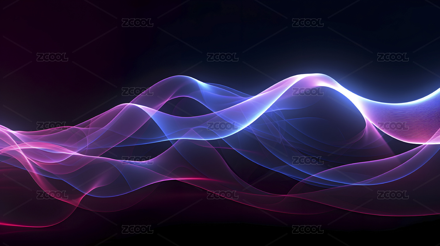 数码紫蓝色发光波浪曲线抽象图形海报背景