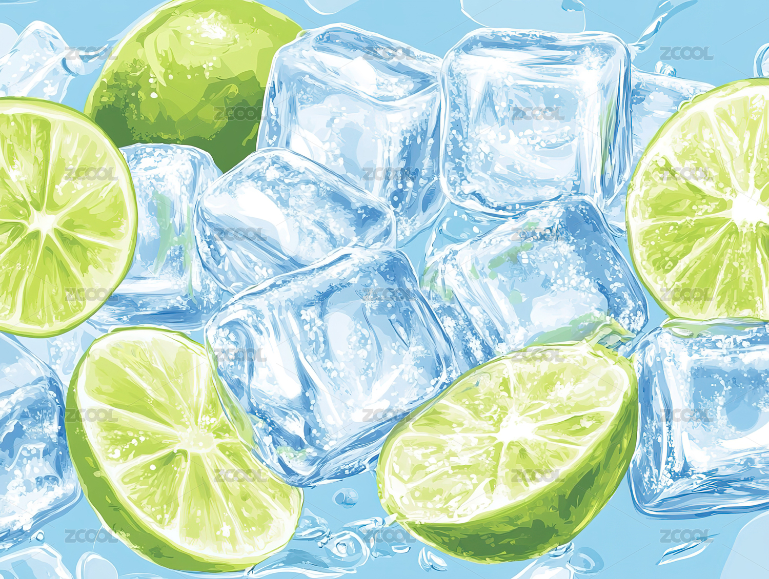 自然,透明,冰块,青柠,清爽,夏日,饮品,新鲜,清凉,水果