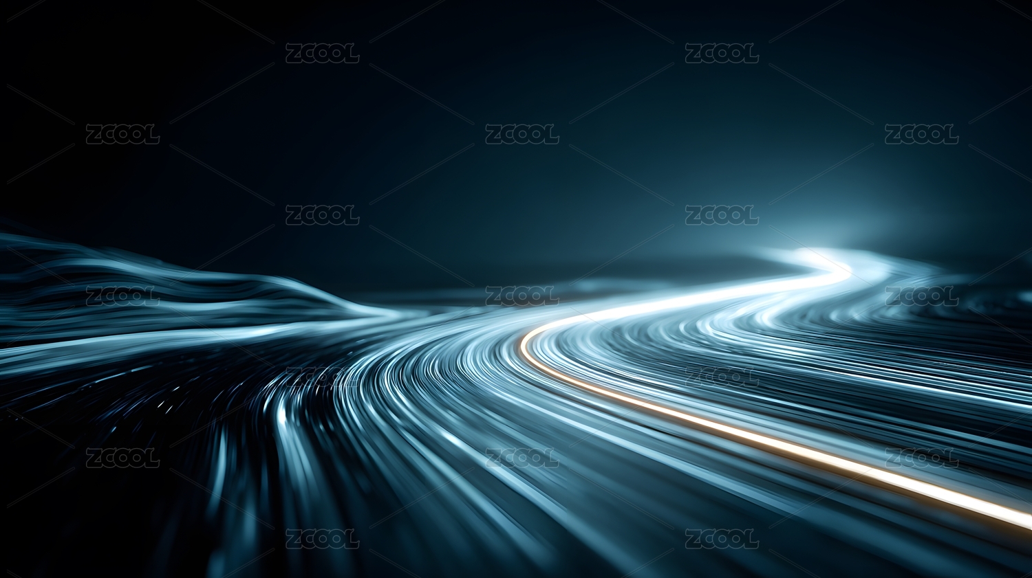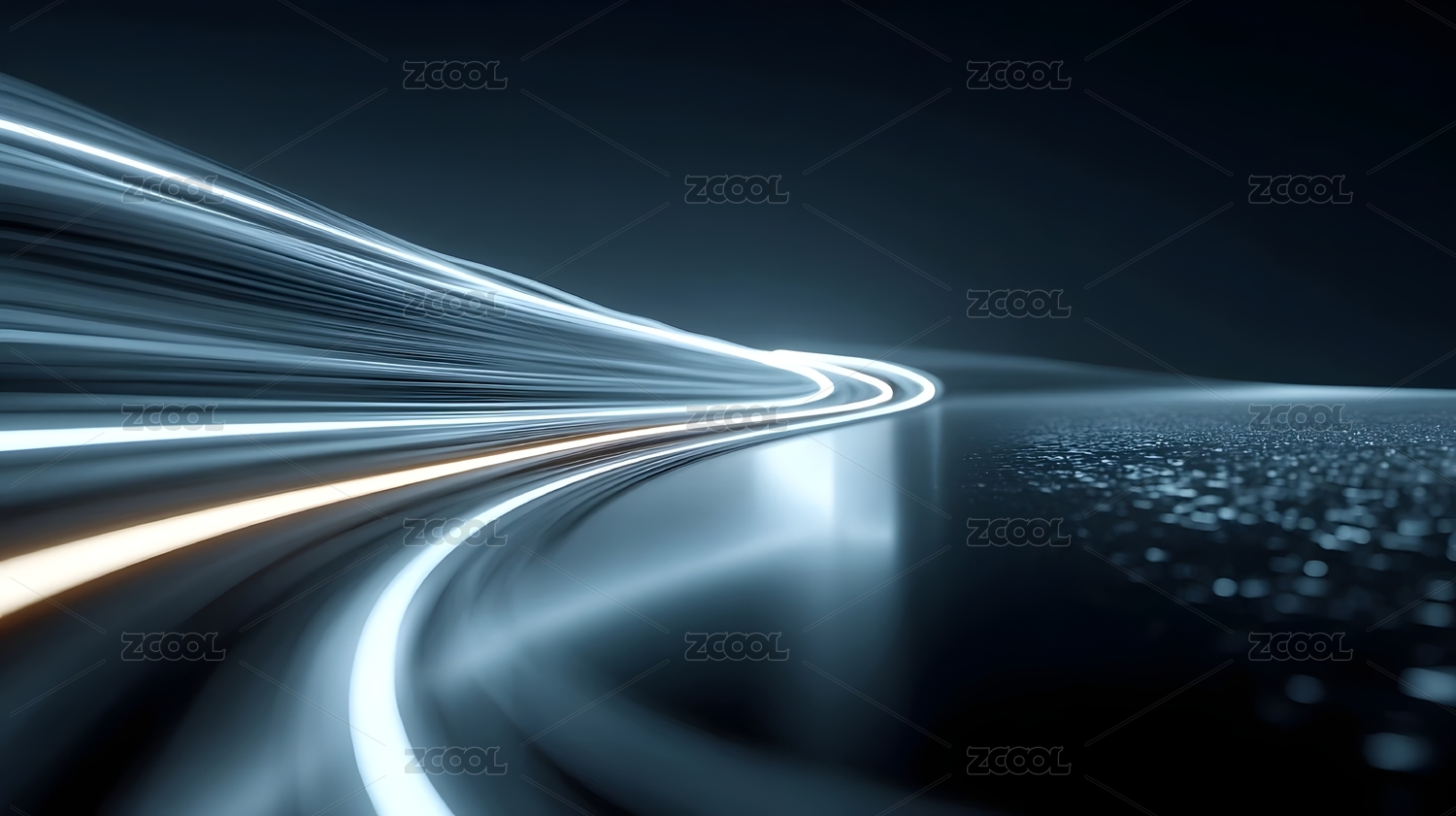 夜幕下光轨道路蜿蜒前行 科技感十足