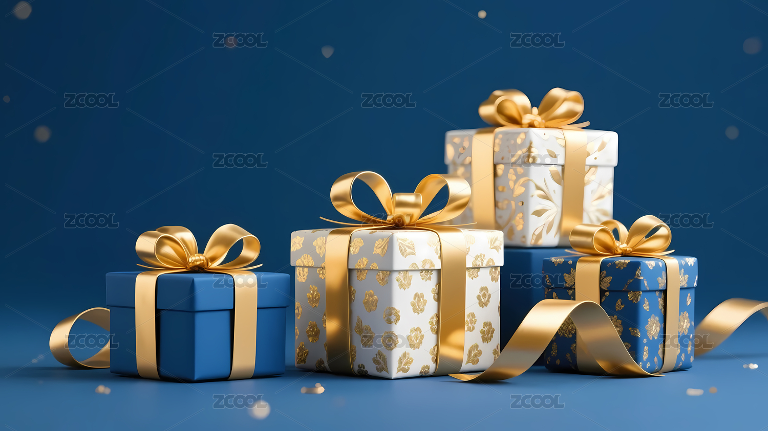 蓝色礼盒金丝带礼物堆叠氛围