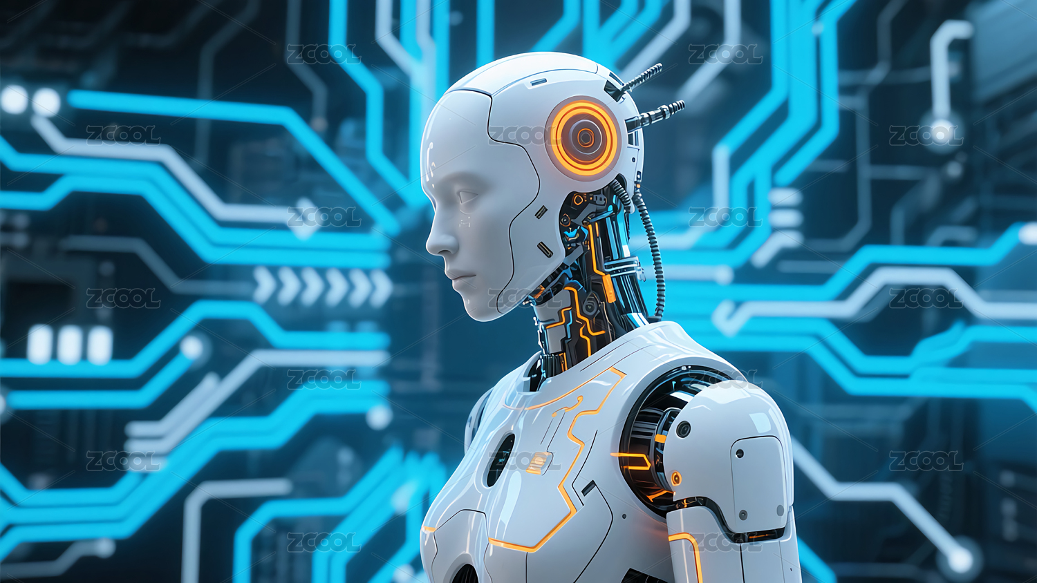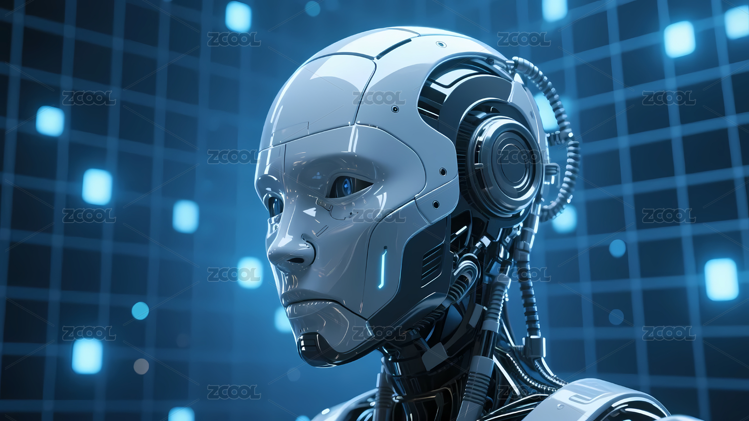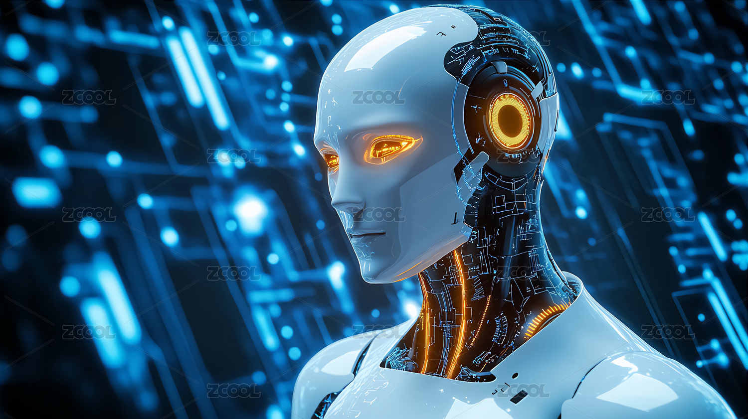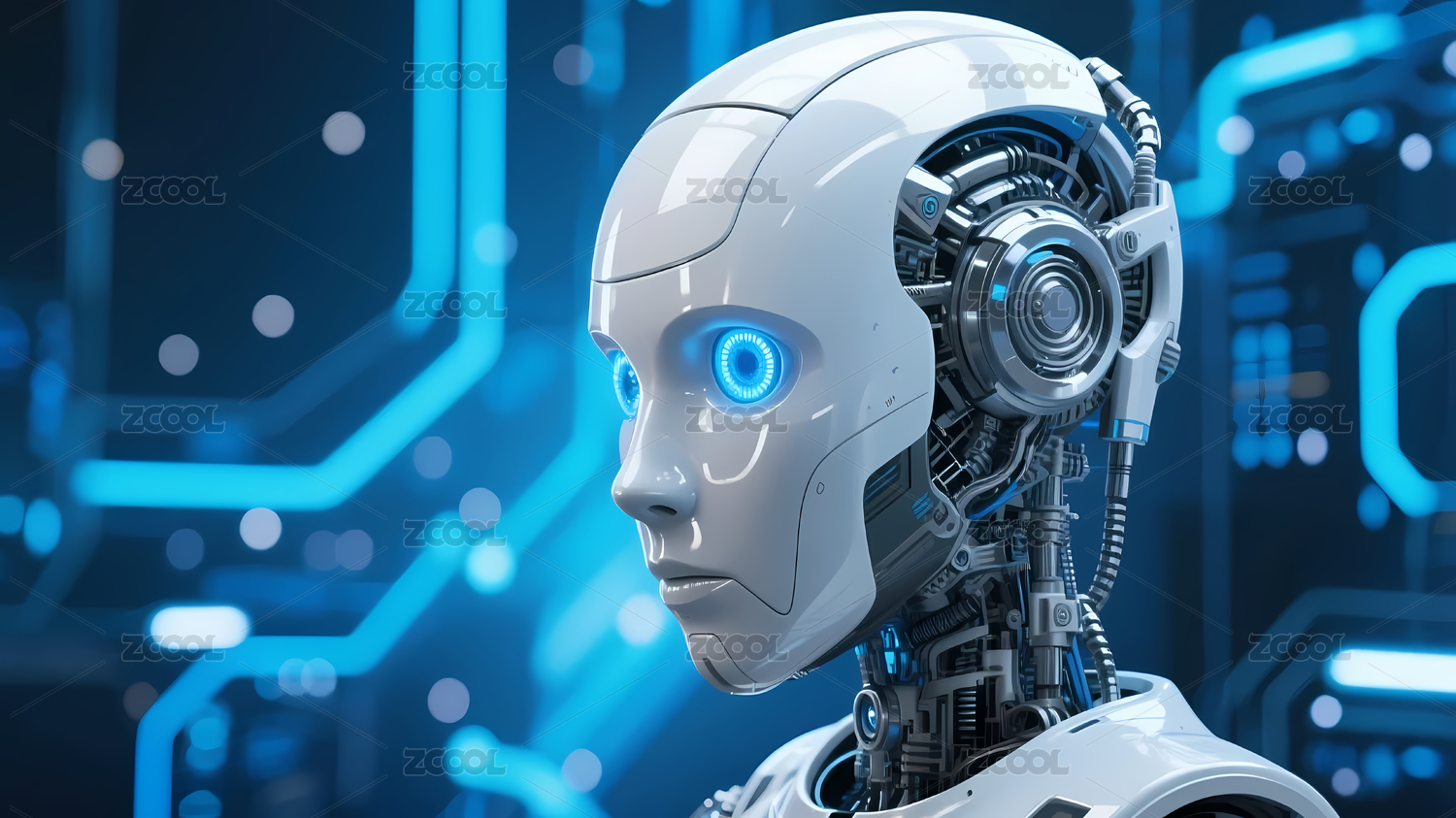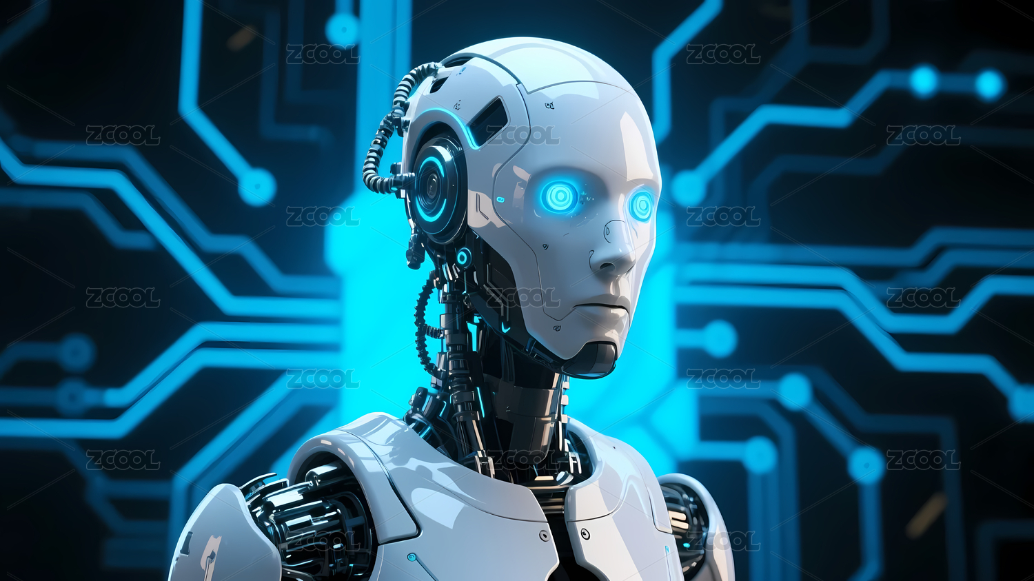 蓝色,科技,未来,抽象,机器人,头部,电路,银白,冷峻,数字化