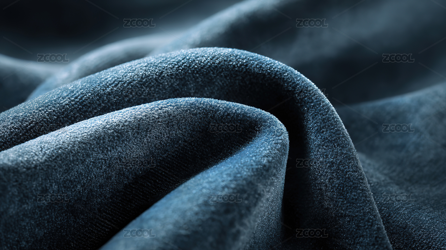 深蓝色天鹅绒布料的细腻褶皱